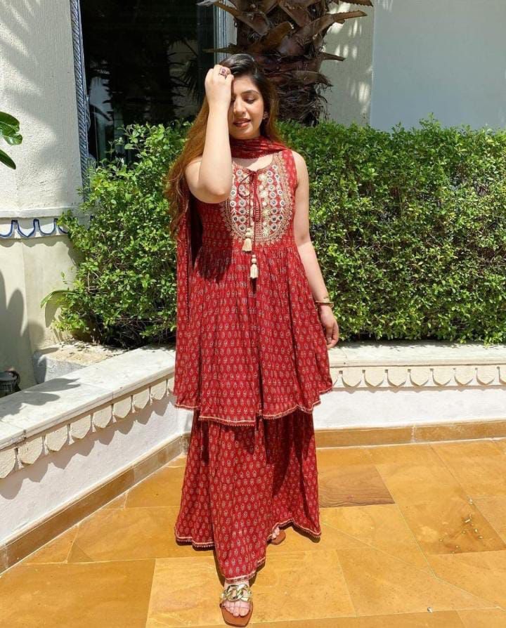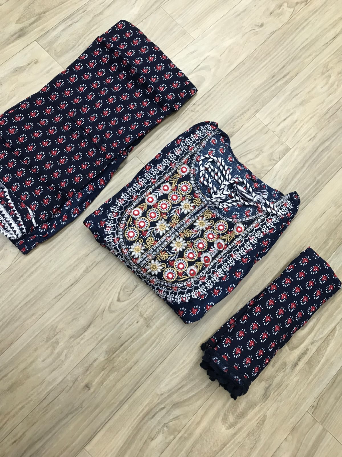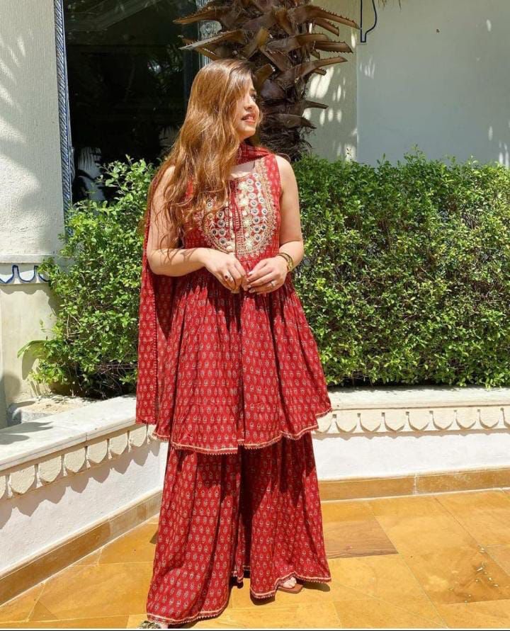 3 PIECE SET OF RAYON KURTI WITH SHARARA AND DUPATTA FOR WOMEN