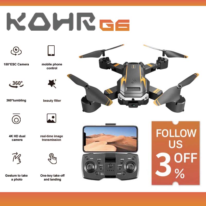 New G6 Aerial Drone 8K S6 HD Camera GPS Obstacle Avoidance RC Helicopter FPV WIFI Professional Foldable Quadcopter Toy The latest drone camera with exceptional camera quality and unbelievable flying precision. Our drone camera is designed for everyone, from the novice to the professional, who wants to capture stunning aerial footage effortlessly. With its GPS positioning system, the drone provides more accurate and stable flight. The drone comes equipped with a 5G Wi-Fi function that allows for connection with the APP and APK system to take pictures and videos. You can transfer images in real-time through your mobile phone camera with its amazing 5G WiFi range up to 5000m. 5G WiFi 8K HD camera for an array of high-definition pictures and videos. With its foldable arms, the drone is compact and easy to carry. With a flight time of up to 15-20 minutes each battery, you can take your time exploring and capturing the perfect footage. The drone also has an altitude hold mode function that provides stable flight, and with its six-axis gyroscope, you can control flight easier and more stable. The drone has so many more features to make flying even more fun and easier. These include: * The orbital motion where the plane fly in circles, providing a cooler shooting angle. * Waypoint flight mode, just draw a route on the screen, and the helicopter will follow the path. * Headless mode, no need to adjust the aircraft's position before the flight. * One-click back function, you can find your way home with ease. * One-click takeoff and landing, where the drone will take off or return to the take-off position automatically. * Low power protection overcurrent protection. * Anti-interference with 2.4GHz technology. * 4 channels, you can fly up, down, forward, backward, left, right. * 3 flight speed switch levels to make flying more fun and exciting. The drone is made with high-strength, high-strength engineering plastics, making it light and durable. It comes with a remote control, a 3.7V lithium battery, a USB charging cable, a screwdriver, a user manual, and two spare blades. This drone camera is perfect for anyone looking for a reliable and high-quality drone camera. It is a perfect fit for everyone from professionals to first-timers. Get your hands on this mini drone with 8K professional quality and quadcopter tendencies today! | ||