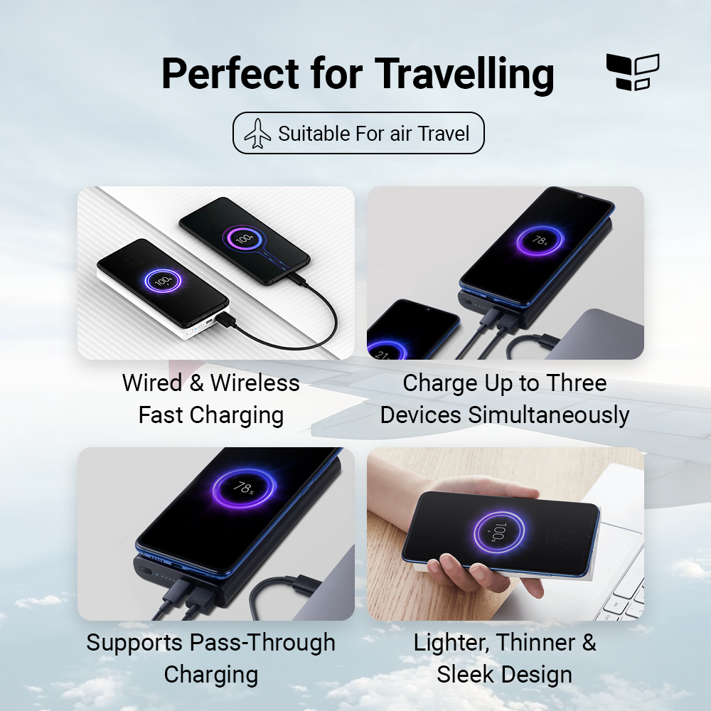 Xiaomi Mi 10W Wireless PowerBank 10000mAh 22.5W Dual Input Output Type Fast Charge WPB15PDZM Travel Size Compatible Wireless or Wired Charging USB C