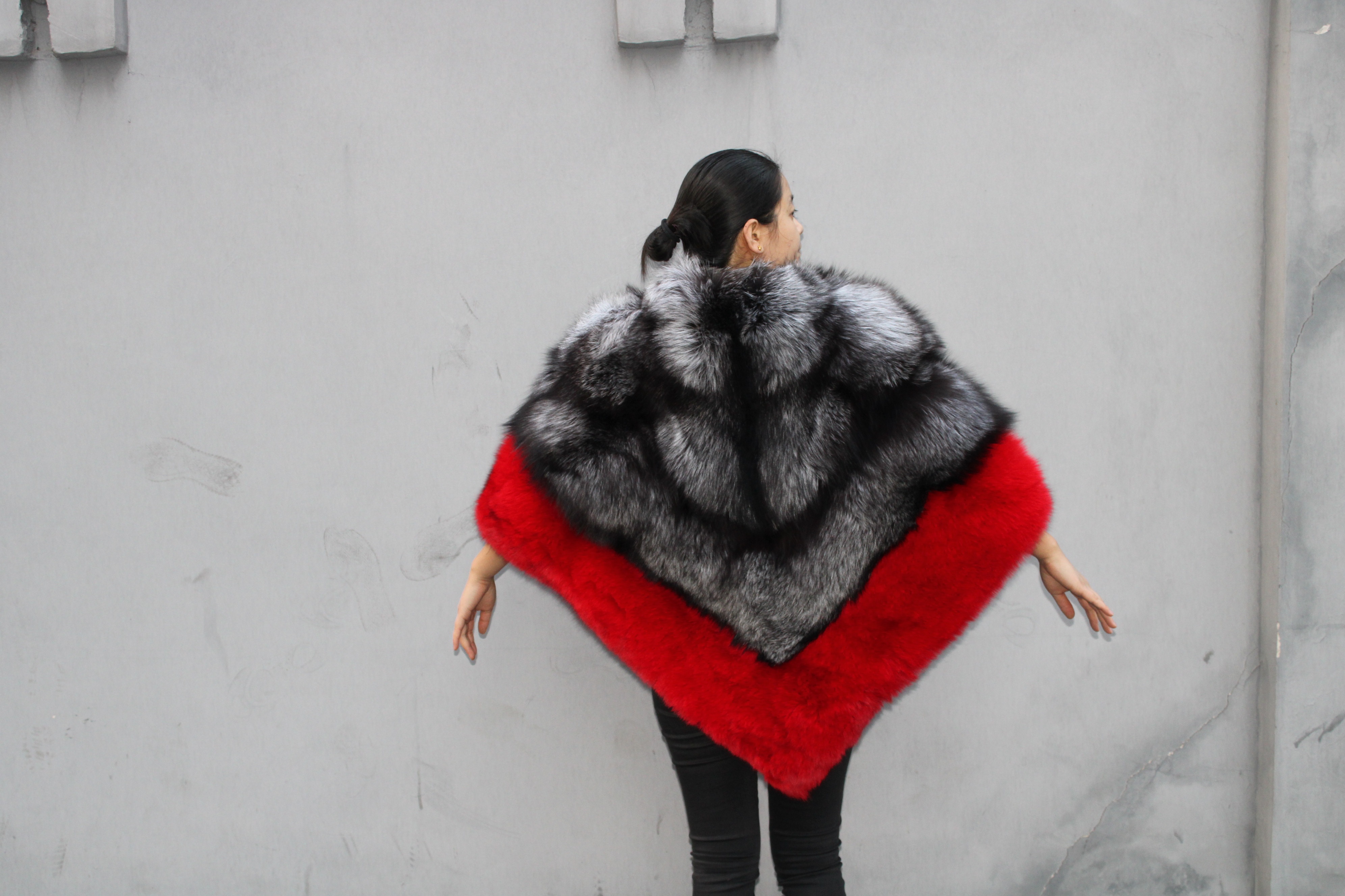 Customization Colors Lady Fur Poncho Real Fox Fur Shawl Women New Fashion Fur Cape