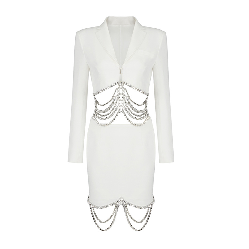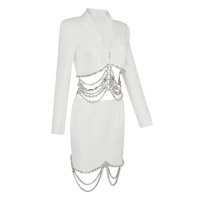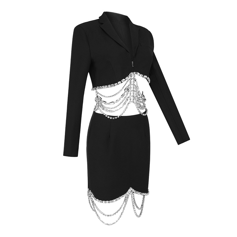 Product Name | AH0094 V-neck Rhinoceros Tassel Suit Heavy Industry Sexy Club Dress Two Sets |