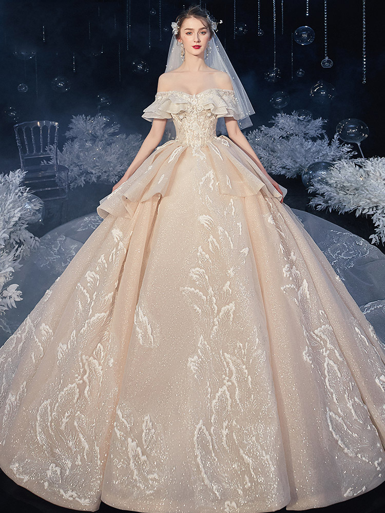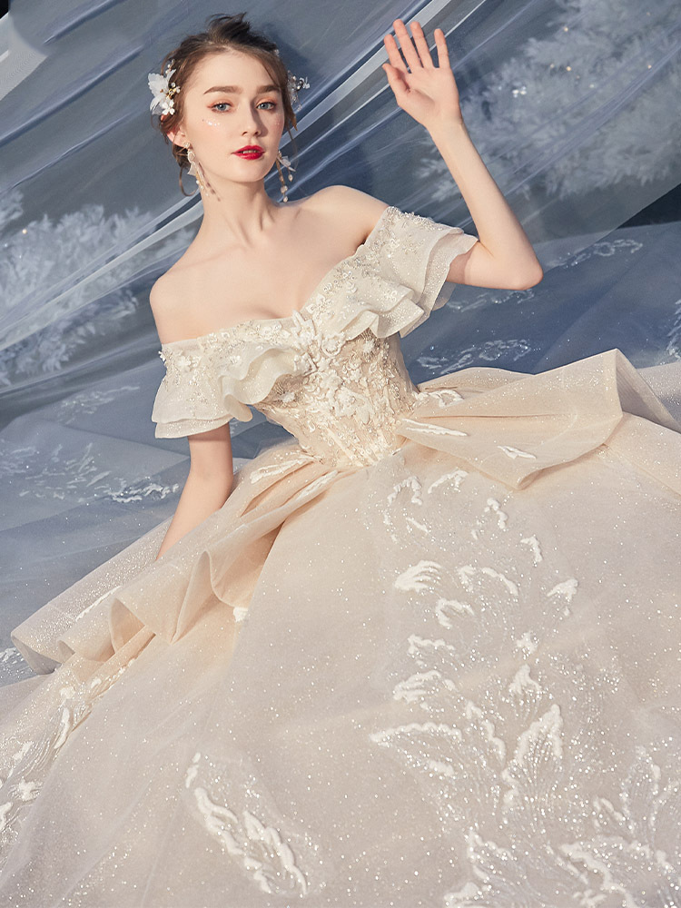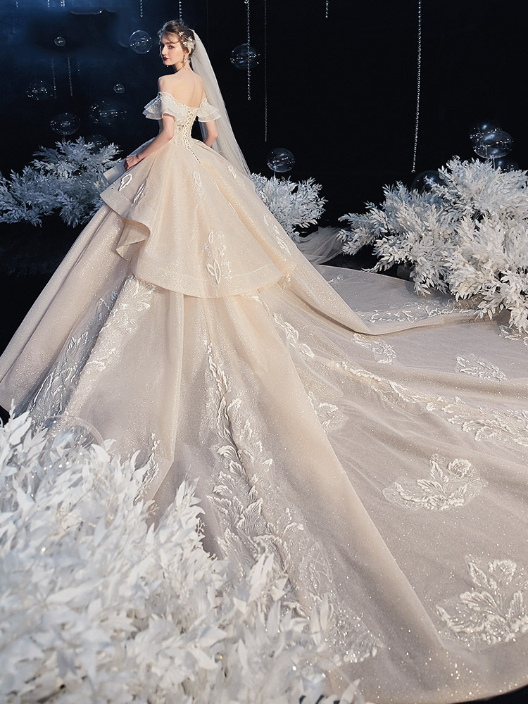 W1001 European Style Pregnant Woman Boat Neck Long Train Wedding Dresses