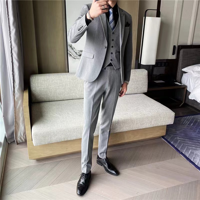 Suit men's three-piece suit Korean version of slim suit men's business professional formal attire groomsman married men's wear