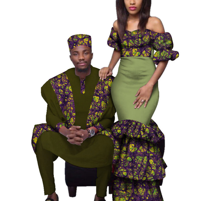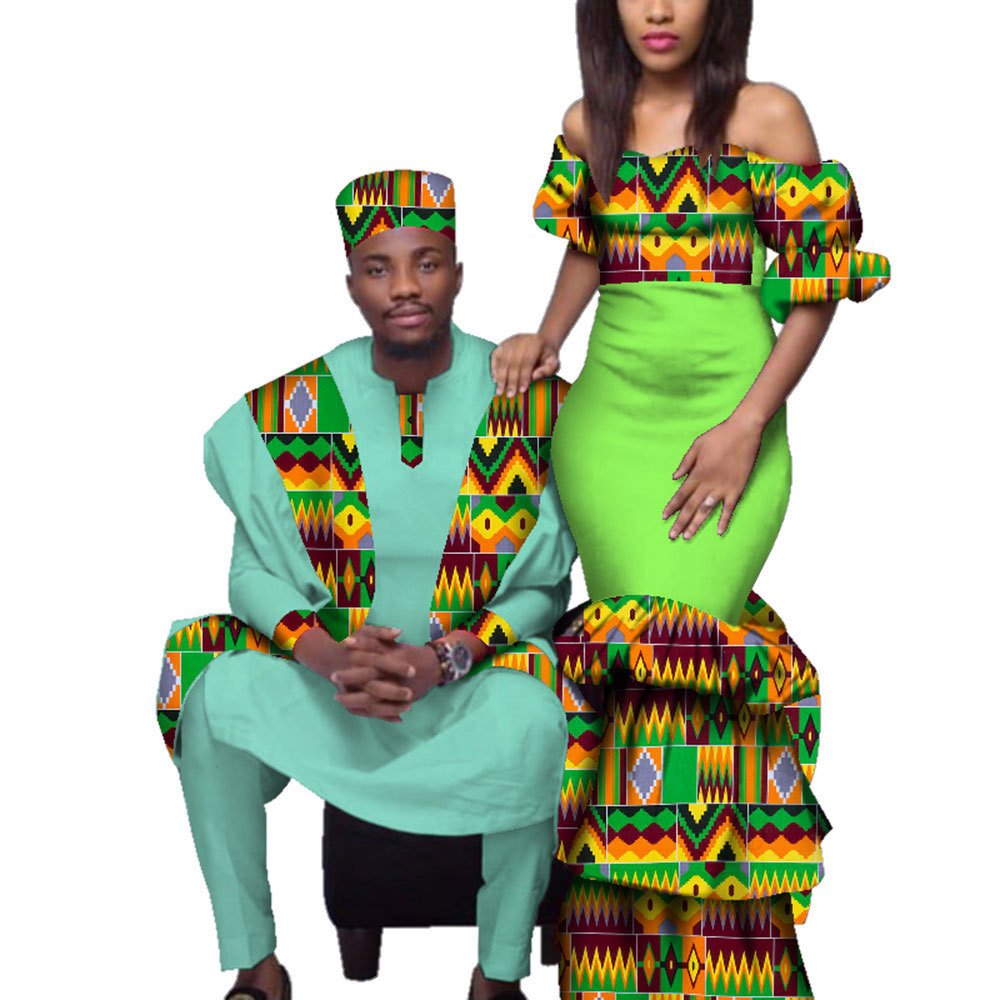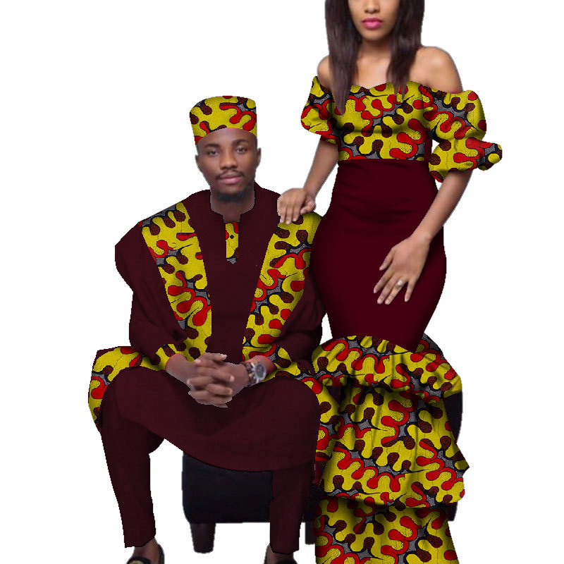 Dropshipping African Bazin clothing designs for women and men java couples clothes fashion evening dress