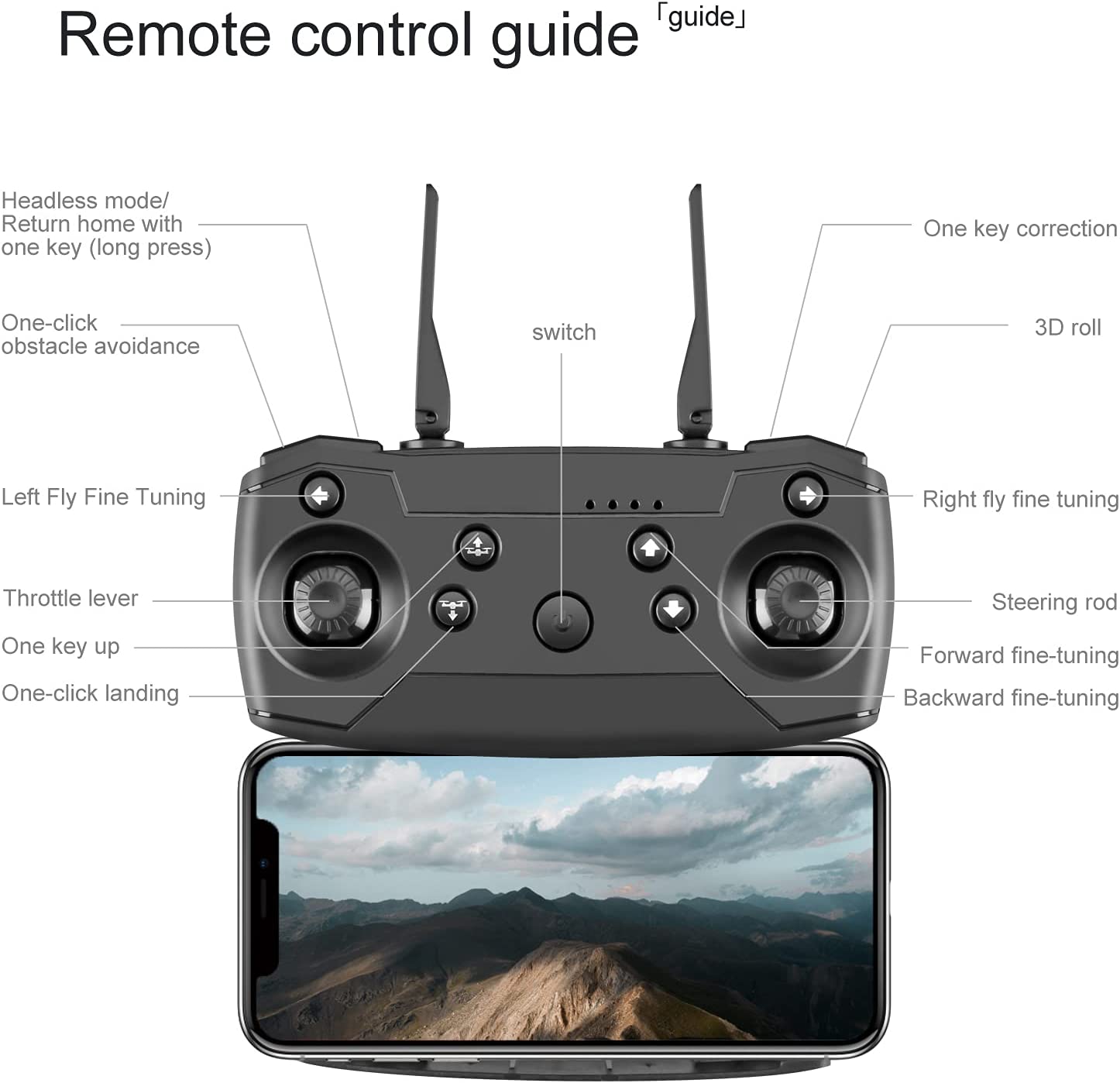 Three-Sided Infrared Obstacle Avoidance, Height-Fixing Function, The Aircraft Can Be Folded, Six-Way With Gyroscope; One-Key Take-Off, One-Key Landing, Ascending And Descending, Forward And Backward, Left And Right Side Flight, Steering, Headless Mode (With Camera Can Add Function: Gesture Photo, Video, Headless Mode, Emergency Stop, Trajectory Flight, Gravity Sensor, Music, 50X Zoom, Automatic Photo) | |