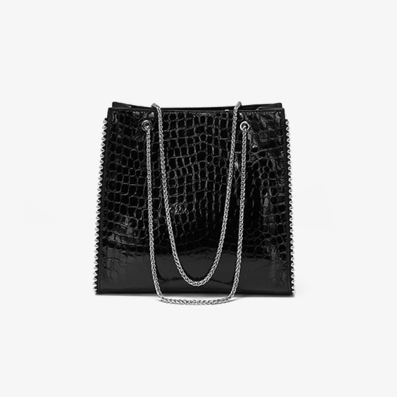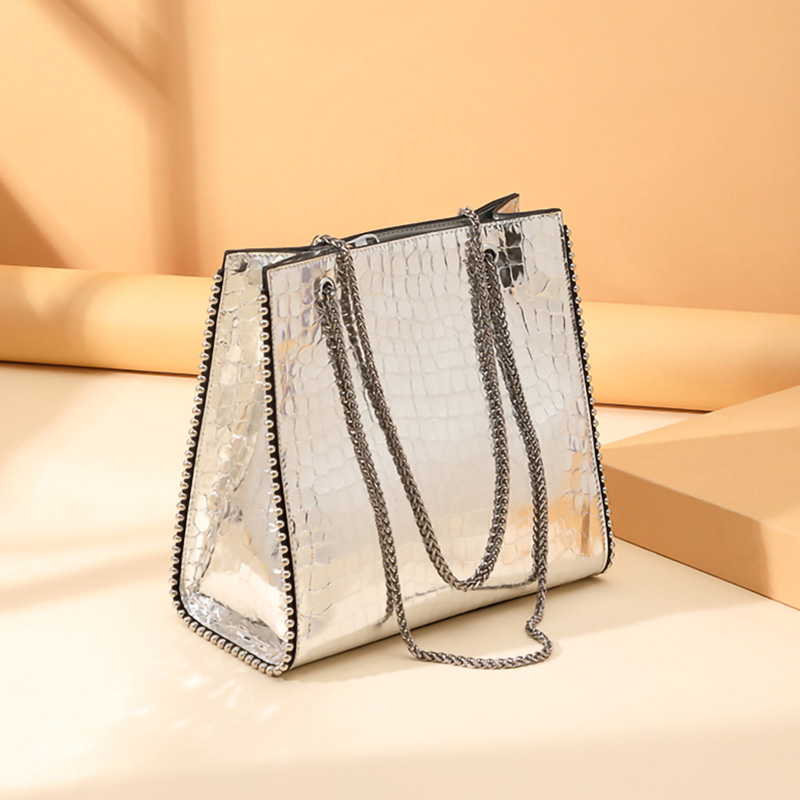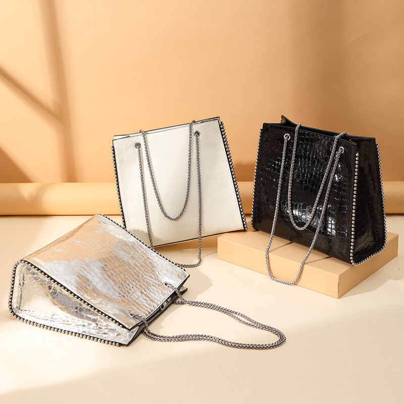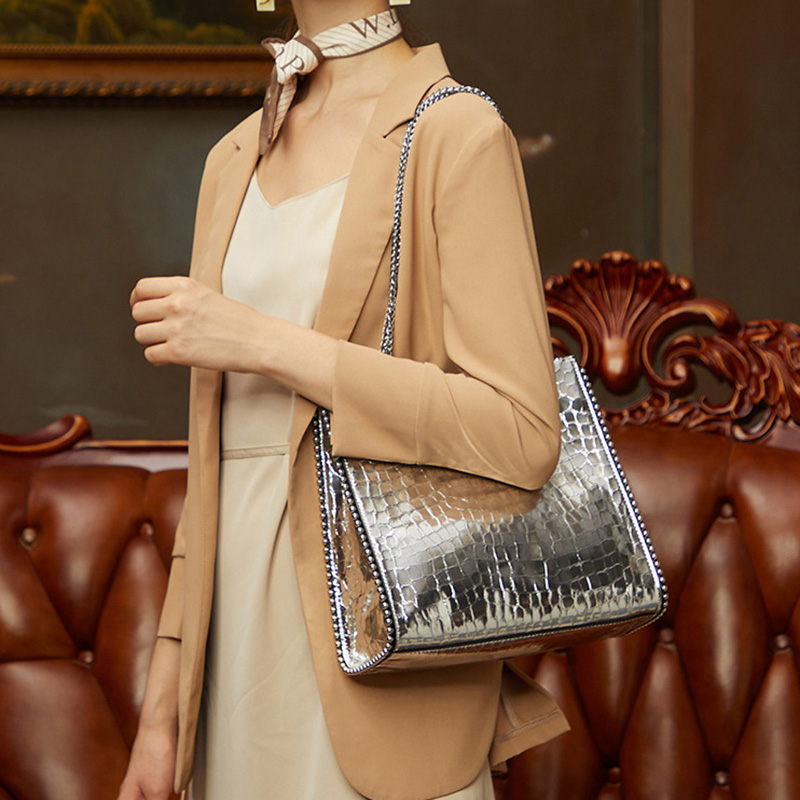New Large Capacity Bags One Shoulder Shiny Leather Bag Top Layer Cowhide Crocodile Pattern Handbag