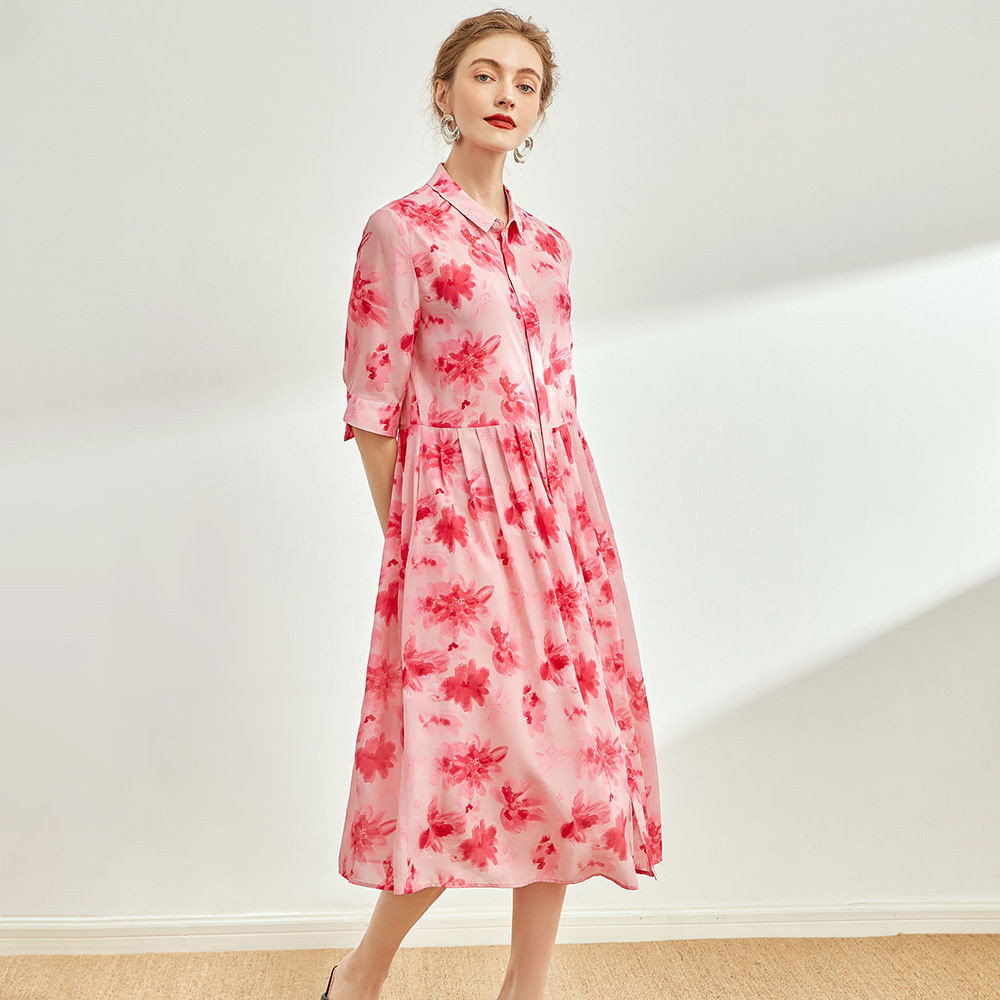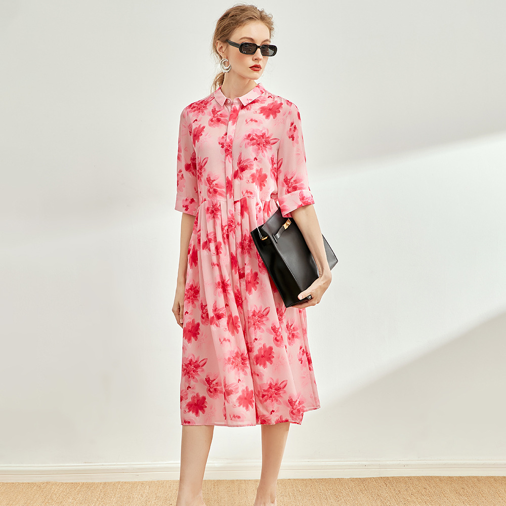 european wholesale brand clothing 2023 French Luxury Romantic women Summer ink Printed Silk Dress