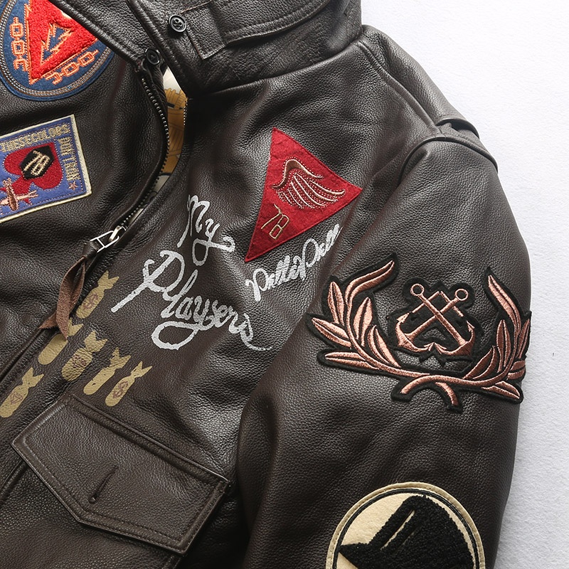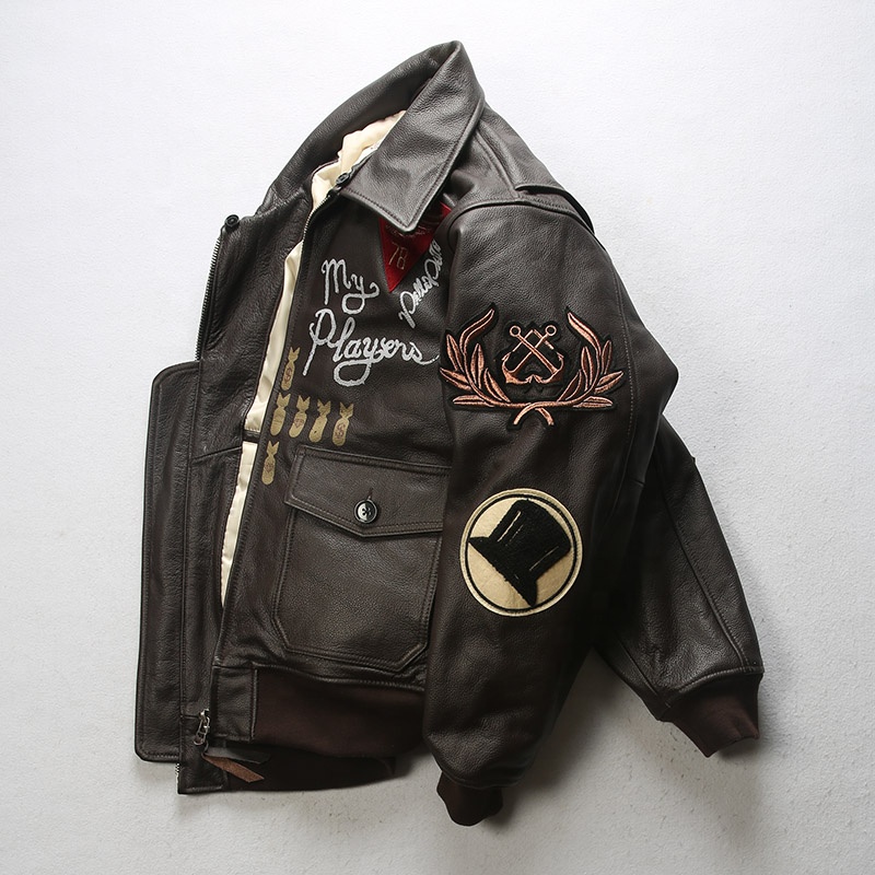 Embroidered standard G1 bomber flight suit genuine leather cotton jacket men's casual top layer cowhide clothing