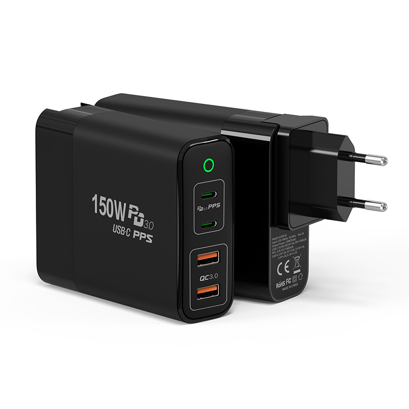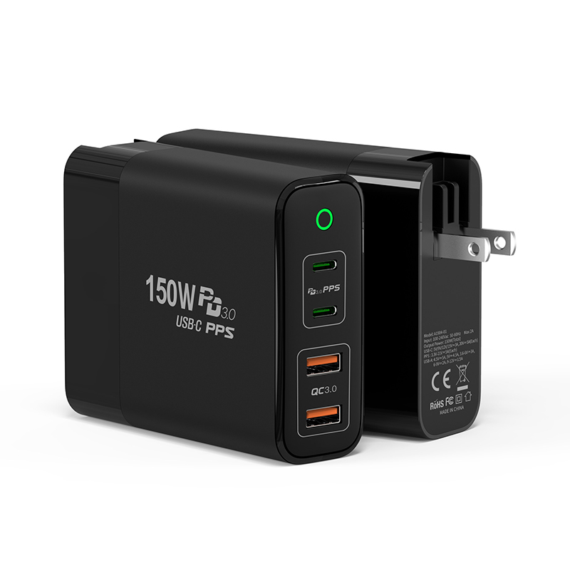 CE FCC EU/US/AU/UK/KR Led USB C A Travel Adapter QC3.0 PD 100W 150W PPS Multiport GaN Charger for Samsung Macbook iPhone Laptop