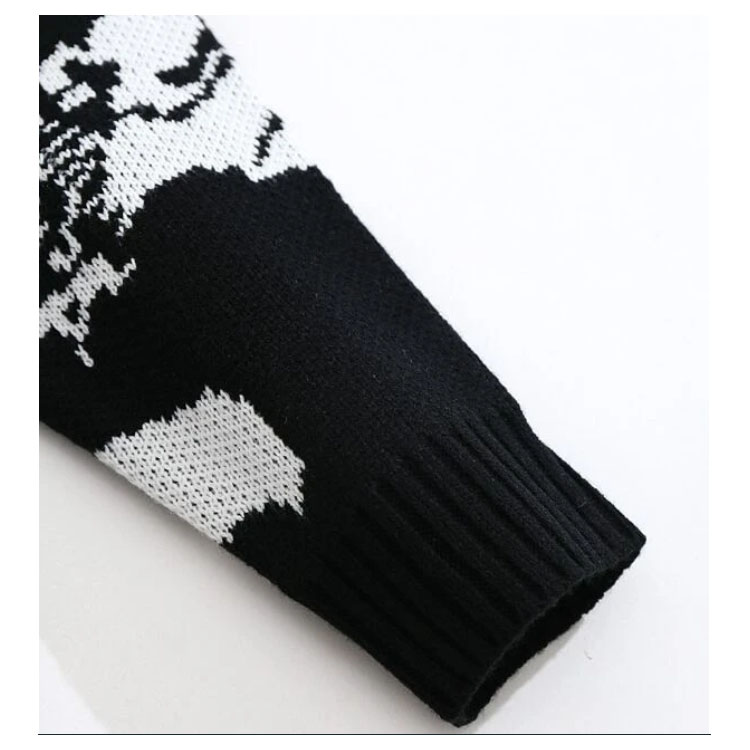 Custom New Men's Halloween sweater white bat jacquard black round neck Pullover Sweater