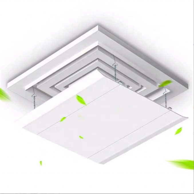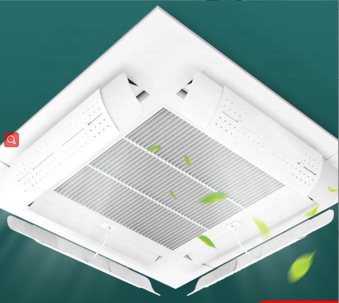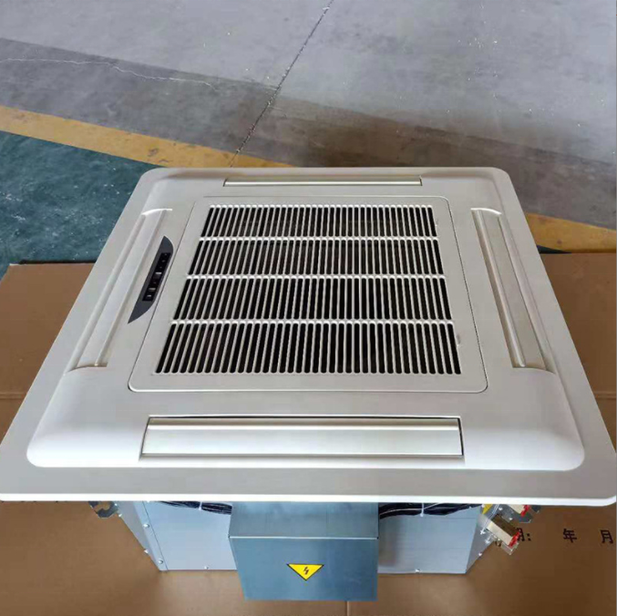 A ceiling-mounted air conditioner is a built-in air conditioner with air coming out of all four sides.