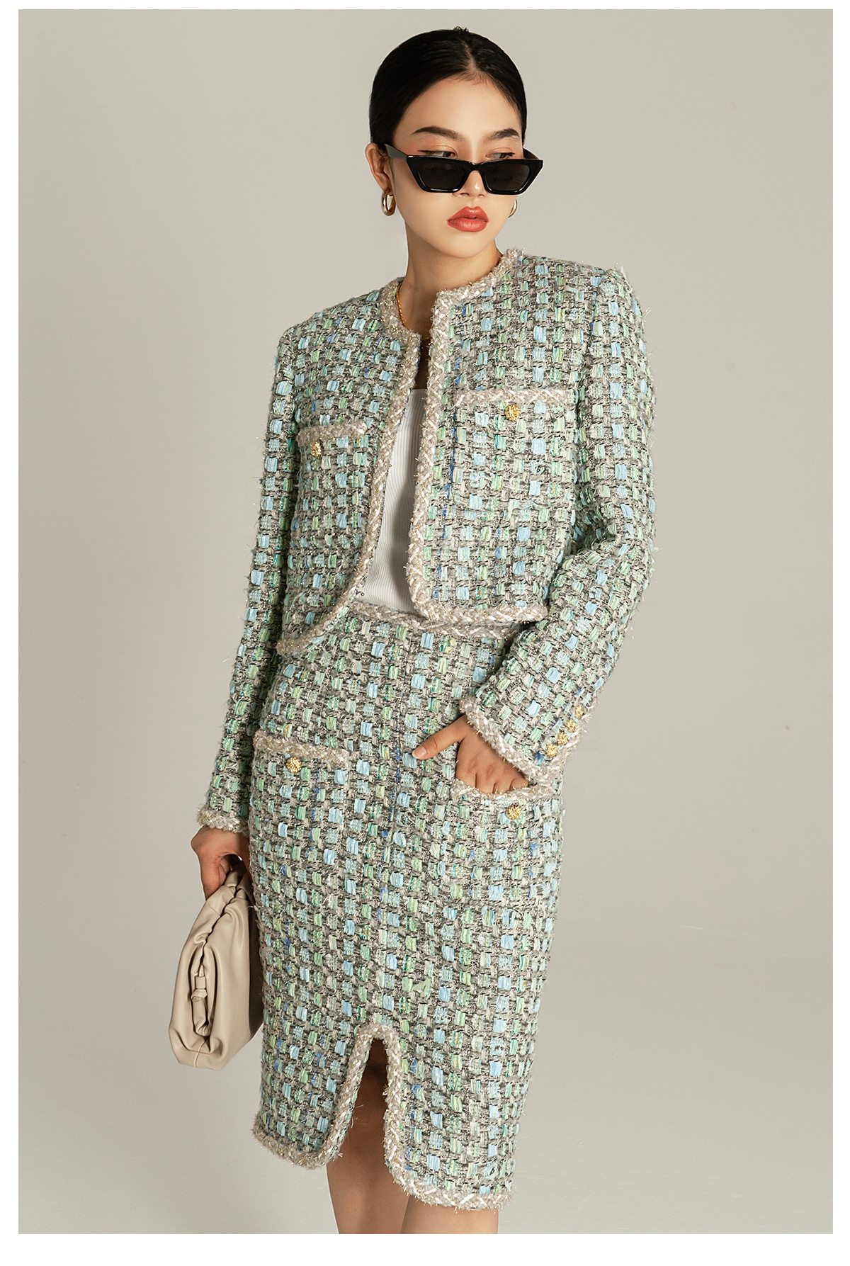 ESSLIFE Women's Office Business attire Temperament Elegant Carded Weaving Coating Suit