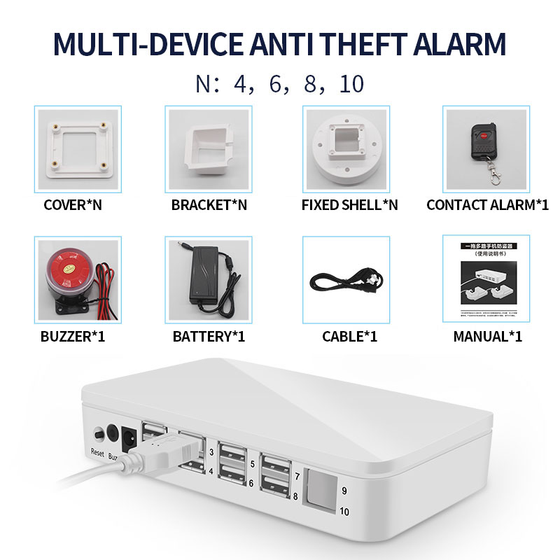 [Easy Setup] Without our simple set-up and all accessories coming with package, installing phone and refreshing this alarm is easily accomplished. Store associates can swap-out the phone alarm post and update it as required with limited hassel time.