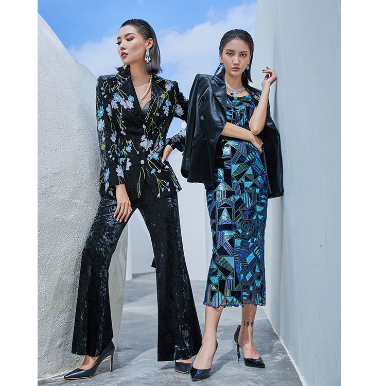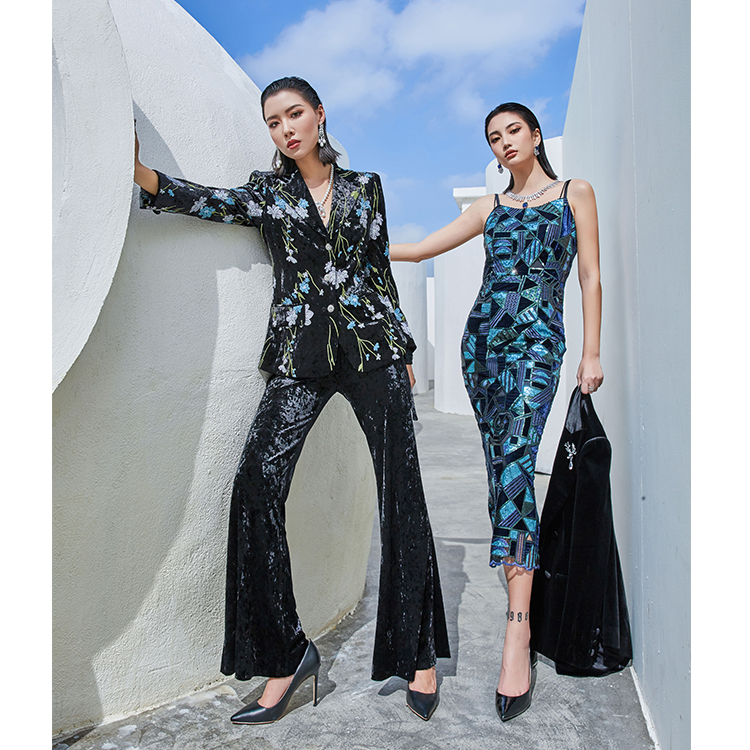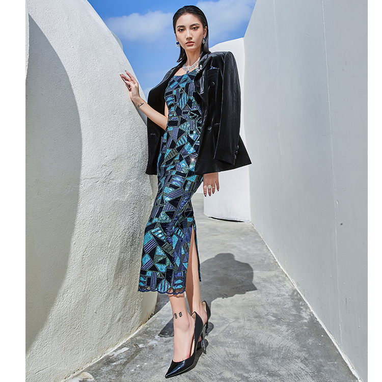 Low Quantity OEM High End Market Boutique Dress Elegant Customized Crystal Design Casual Woman Dress
