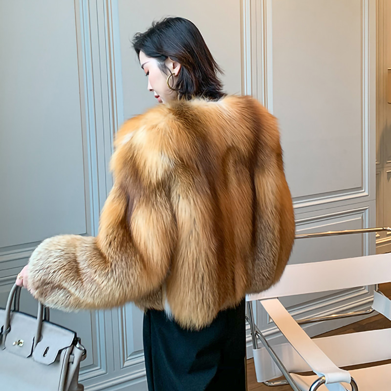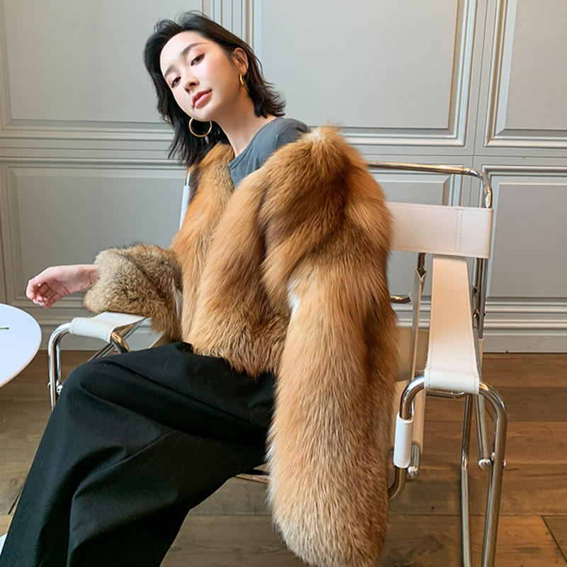 Fashion Winter Warm Short Fur Jackets Luxury Real Red Fox Fur Coat Women