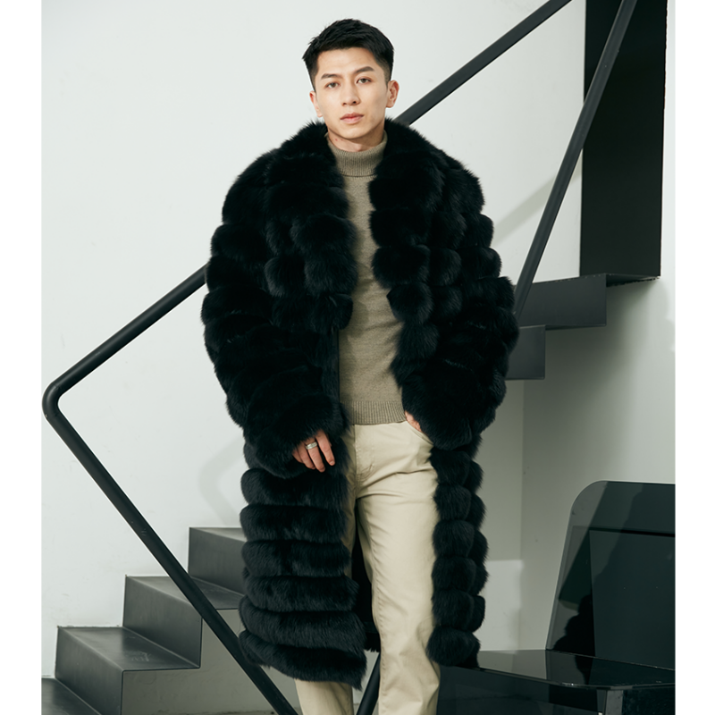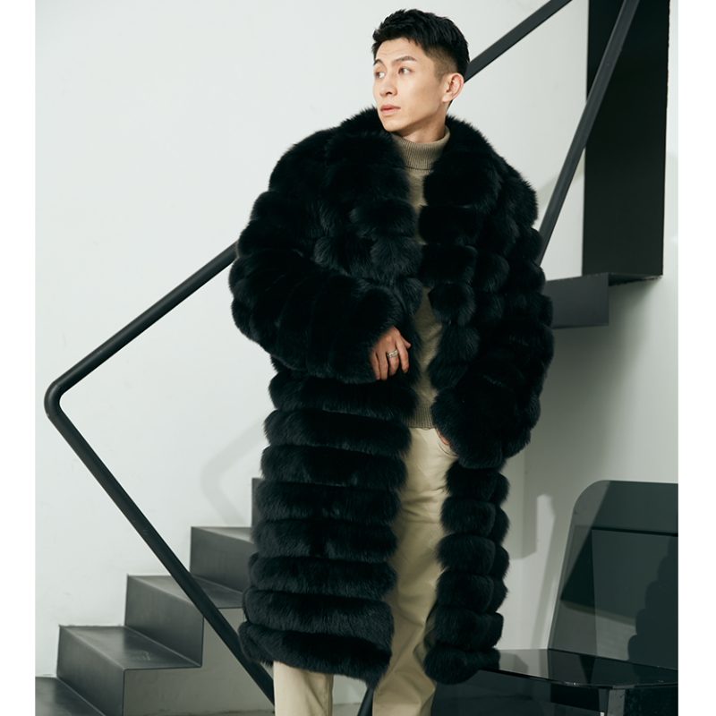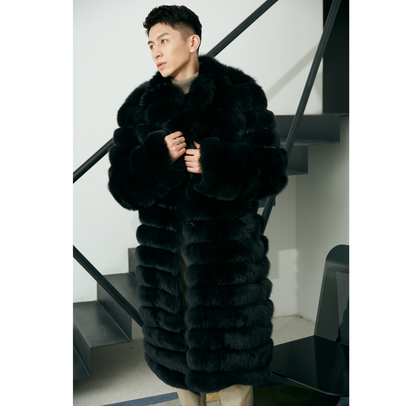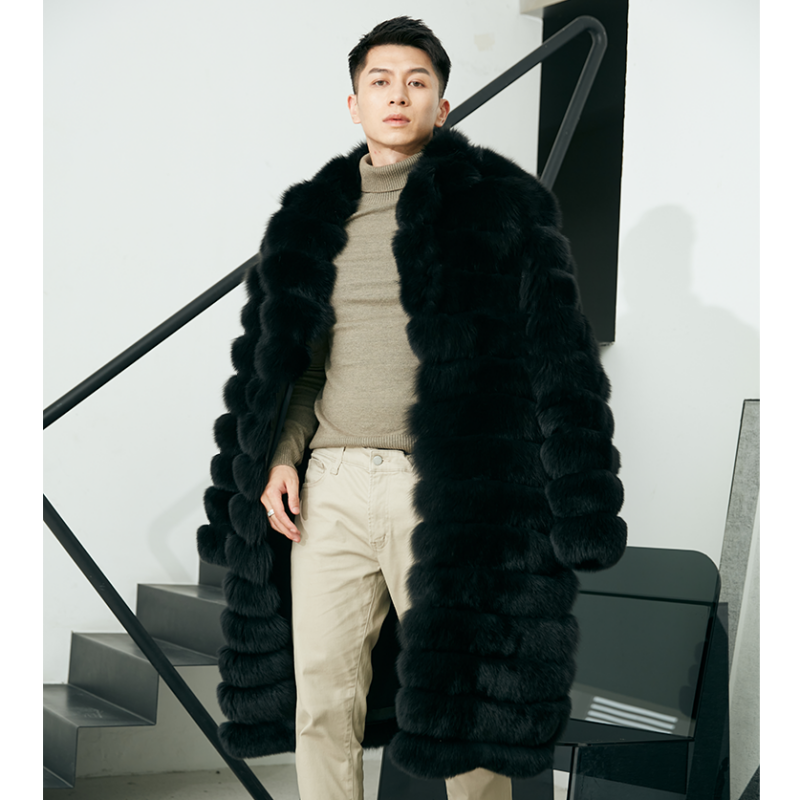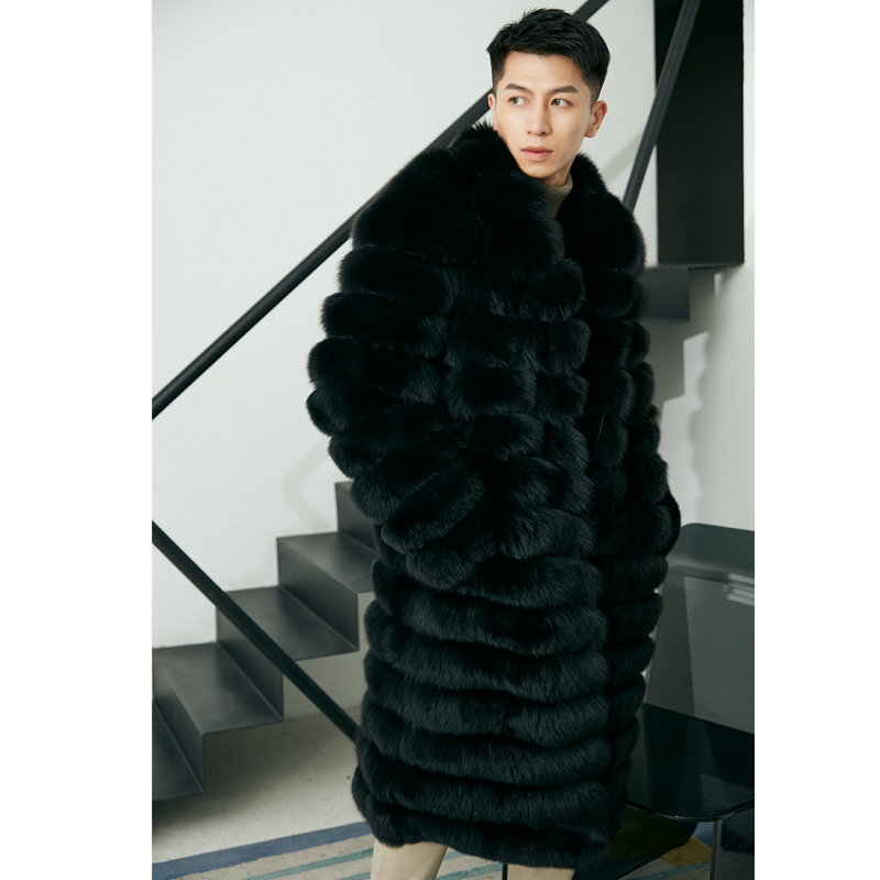 Factory Custom Style Mens Winter Black Fur Coat Long Real Fox Fur Coat Men