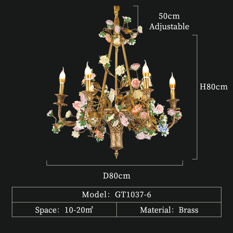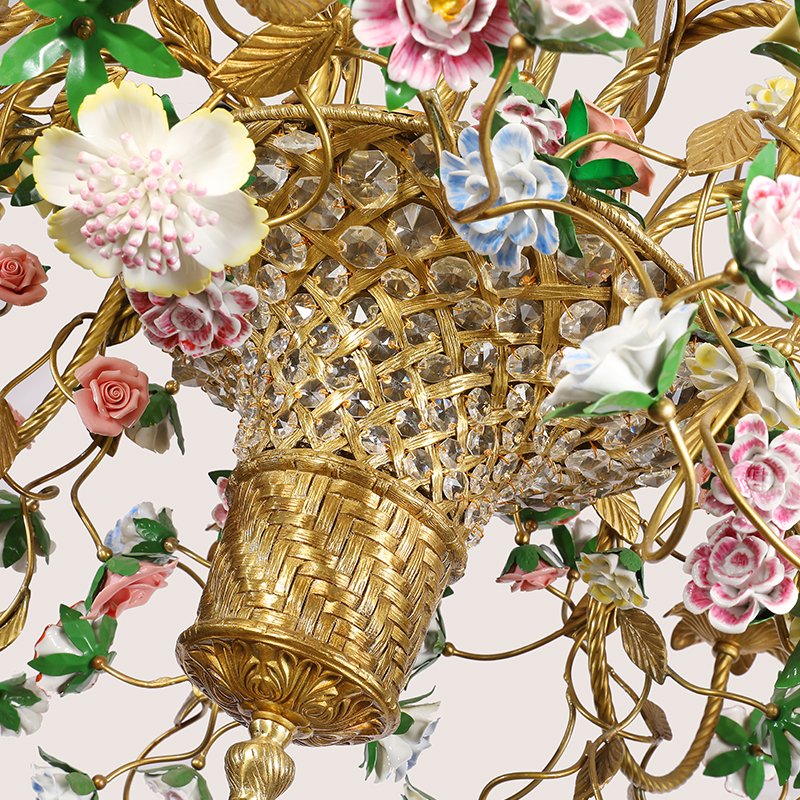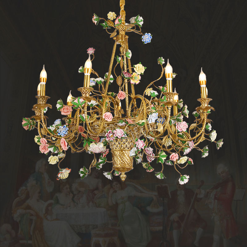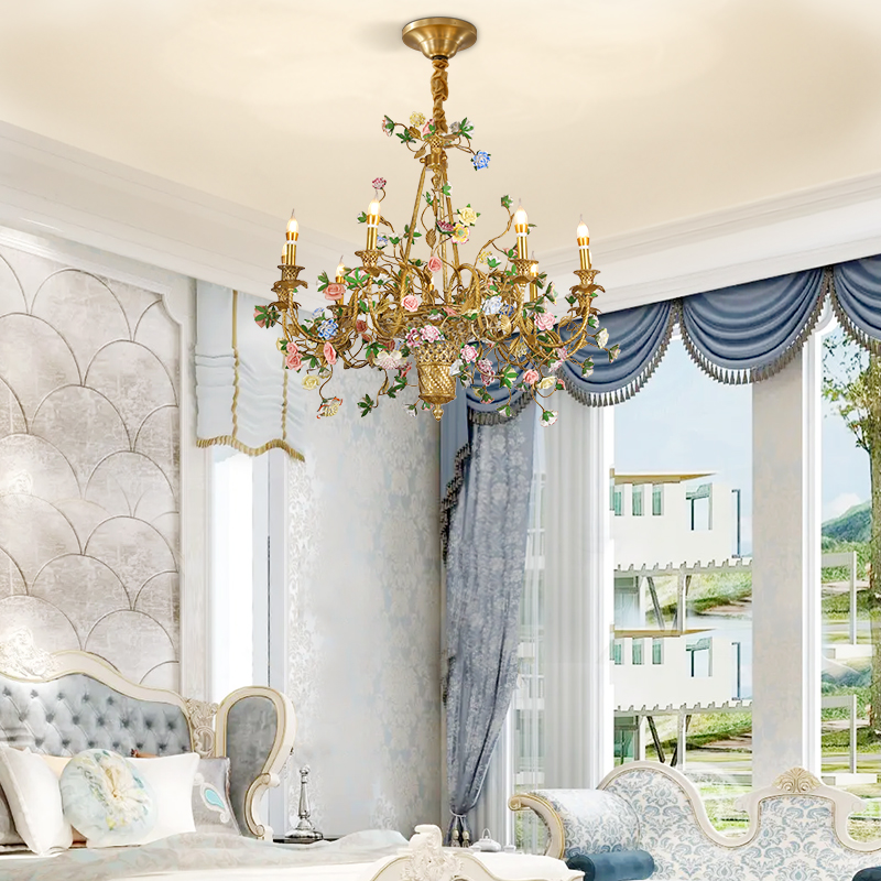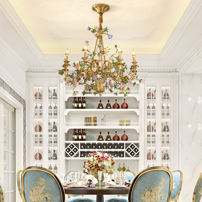 Zhongshan Factory European Style Brass Led Pendant Light With Porcelain Flowers Luxury Chandelier