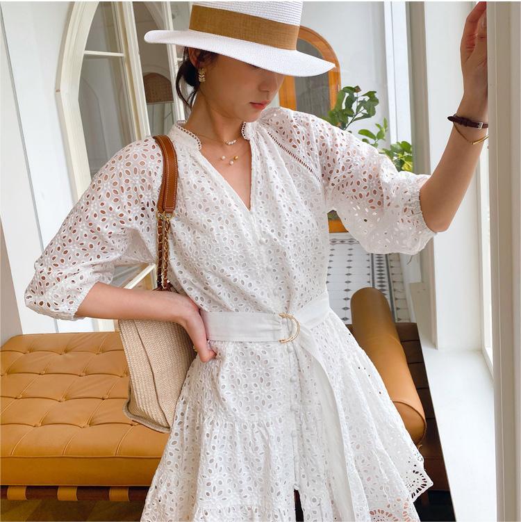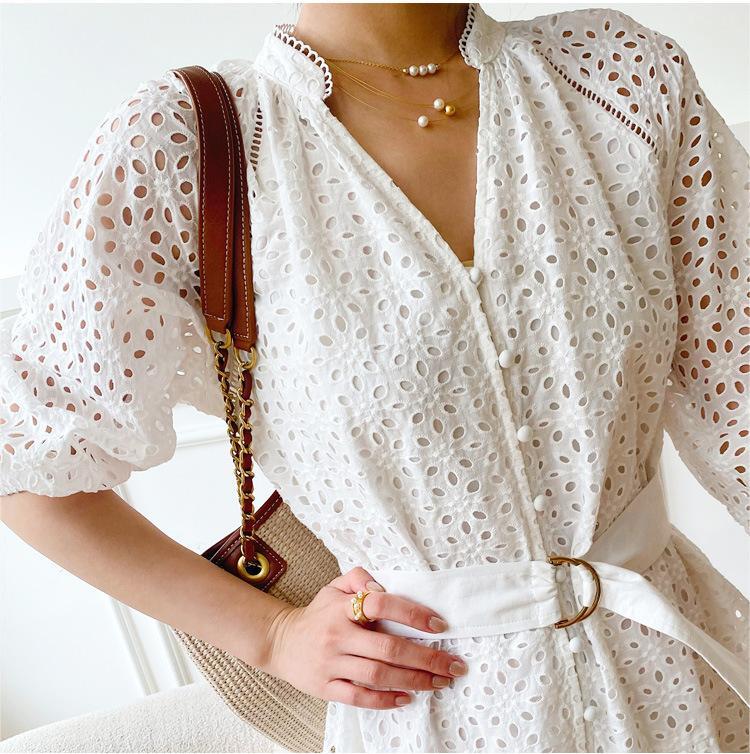 2023 Spring And Summer New White Embroidery Dress French Niche Design Sense Foreign Trade Women's Clothing