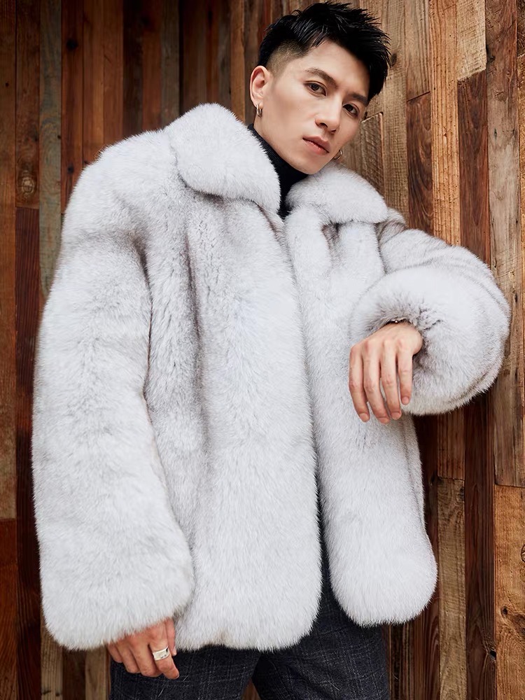 New Arrives casaco de pele de raposa Solid Color Double layered collar Winter Fluffy outerwear Men Long Fur Coat