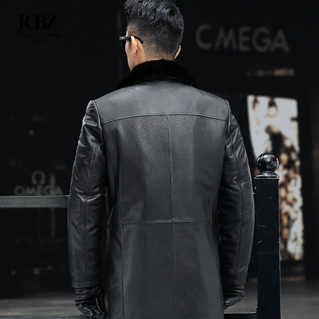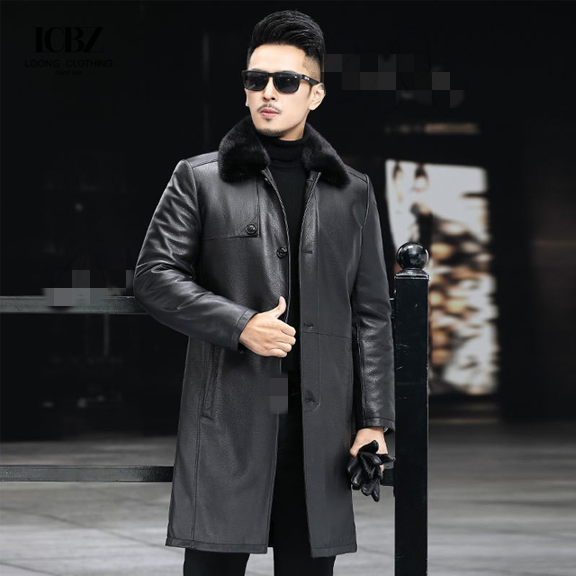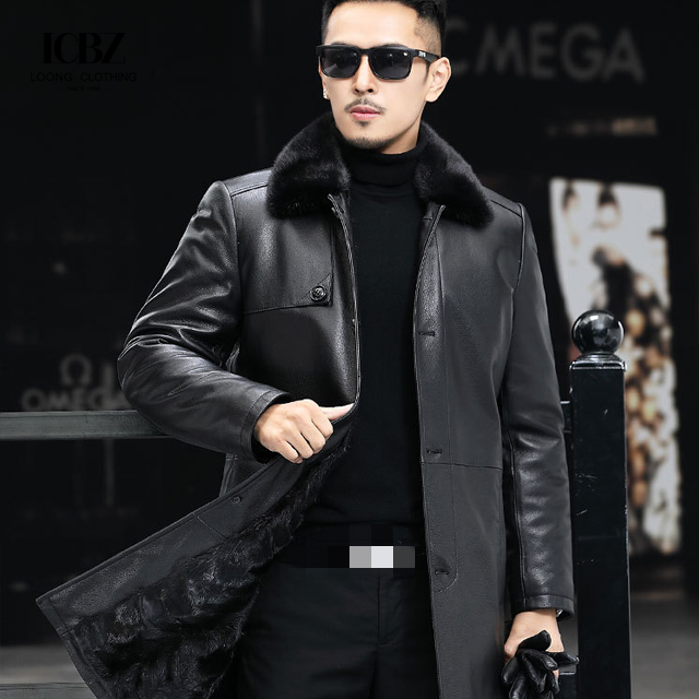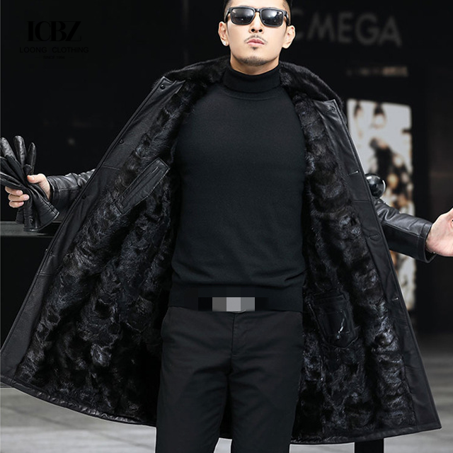 Wholesale Fur Men's Genuine Leather Coat Men's Leather Goatskin Mid-length Mink Fur Coat Jacket