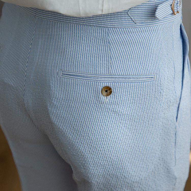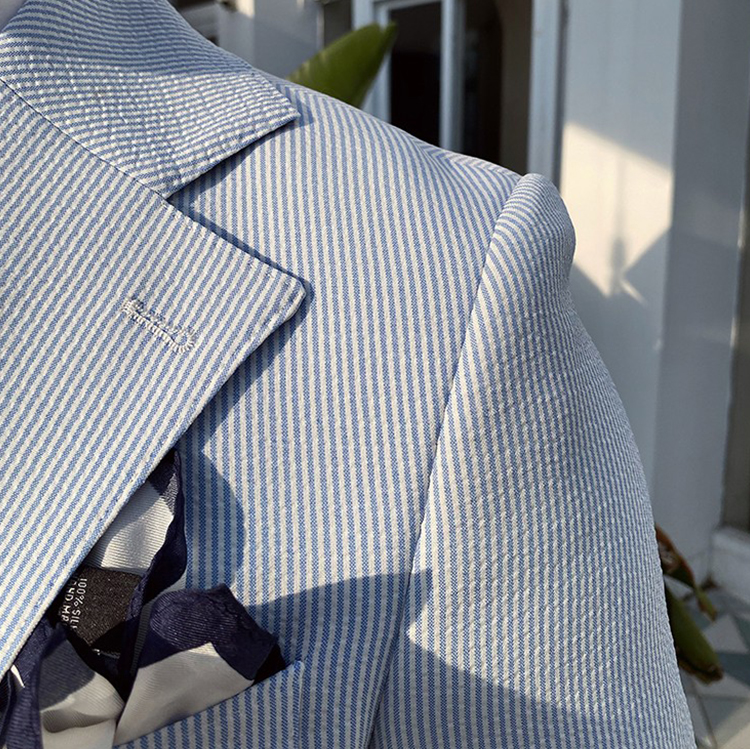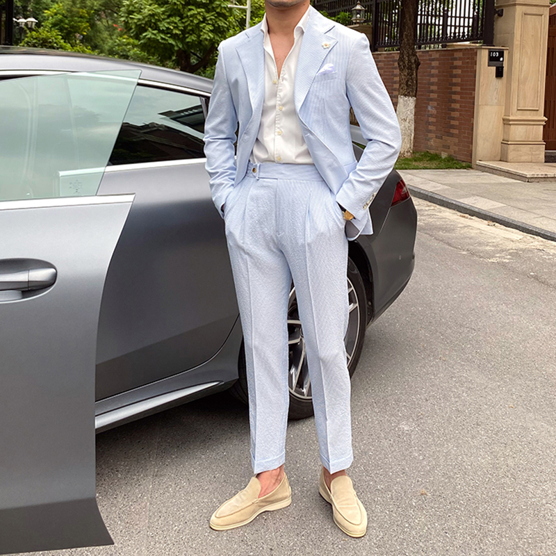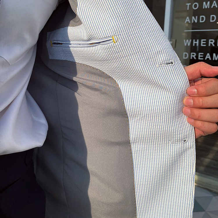 2023 Summer men's casual blue striped seersucker suit British gentry suit for 2 in 1