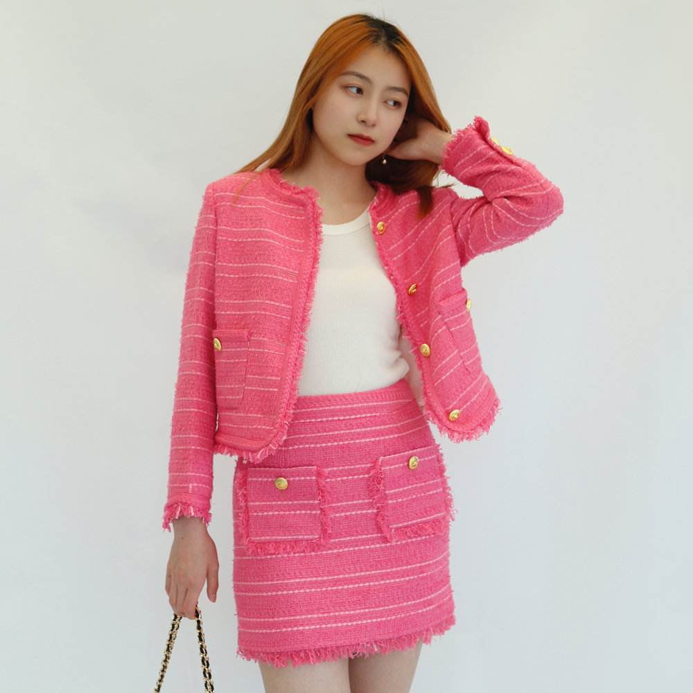 OEM Ladies' Suit Woven Fabric Sustainable Anti-Static Wool Blended 2 Pieces Coat & Skirt Set