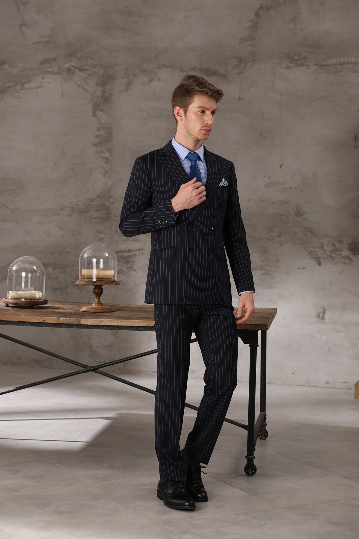 Shenzhen Tailor Shop Tailor-made High-quality Wool Cashmere Black and White Stripes Slimming Business Three Suits