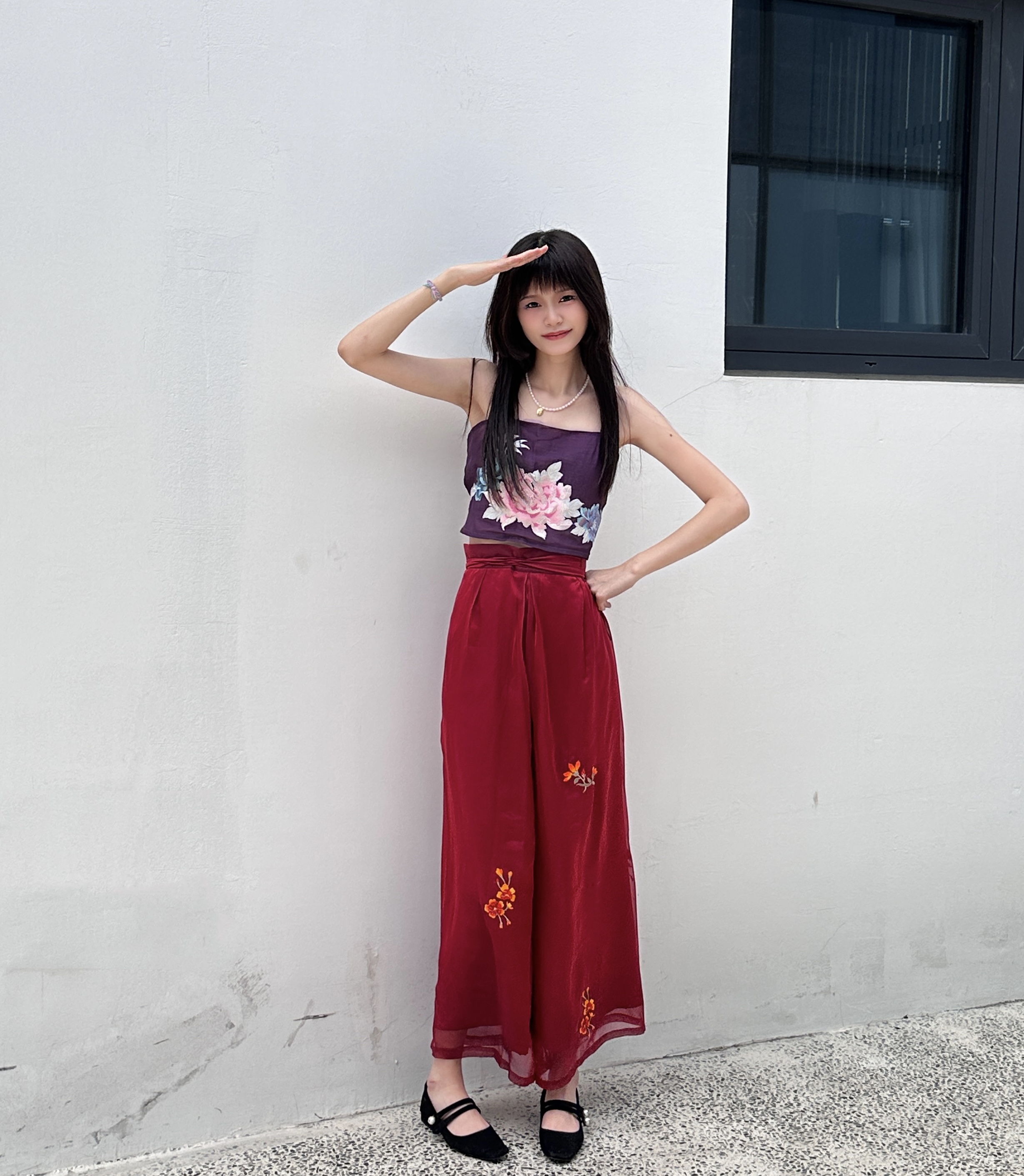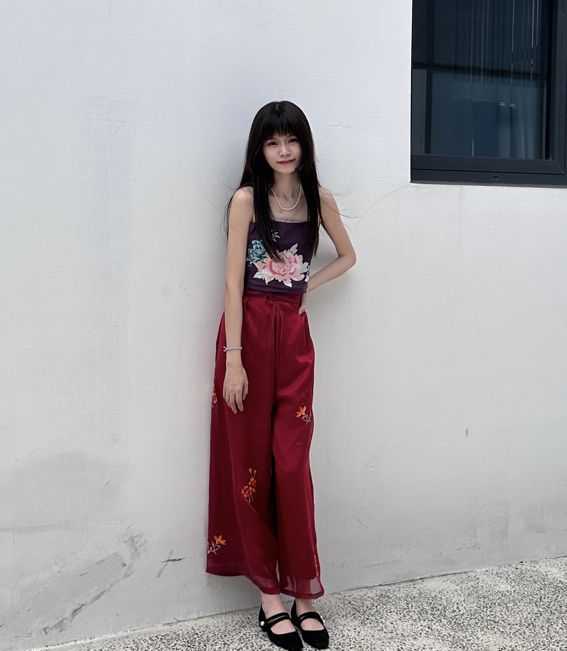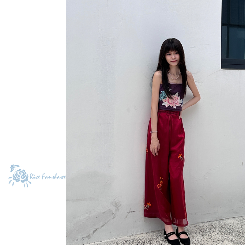 Good Quality Luxtry Women's Sling Bandeau and Lace Wide-leg pants Two Sets in Red Color Traditional Chinese Style Women Clothing