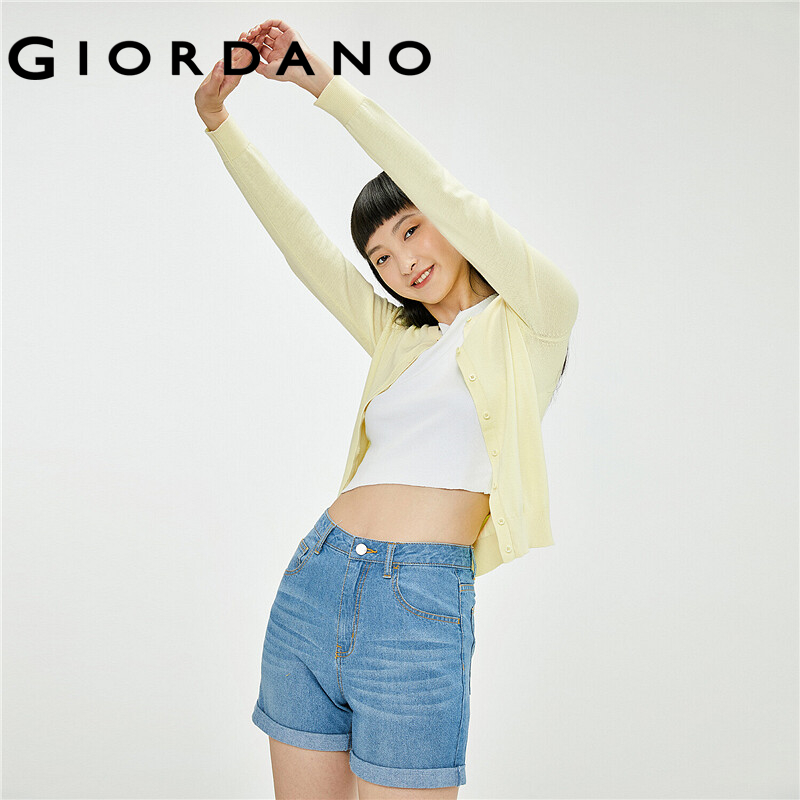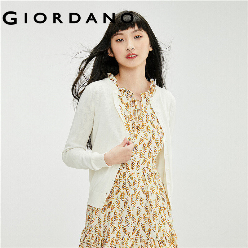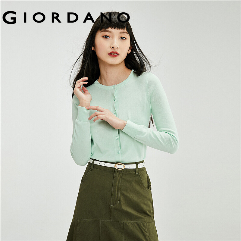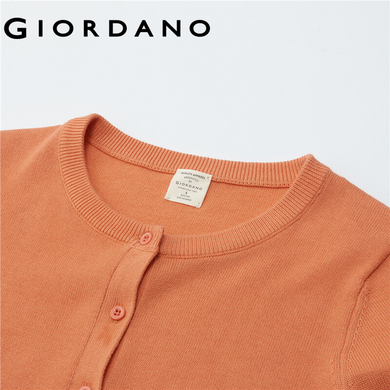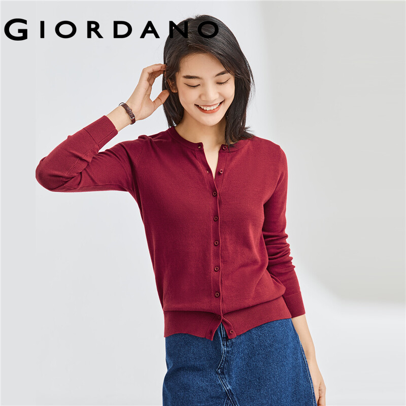 Giordano Women Cardigans Ribbed Cuffs Crewneck Cardigans Plain Button Closure 14-Needle Knitting Lightweight Cardigans 05351866