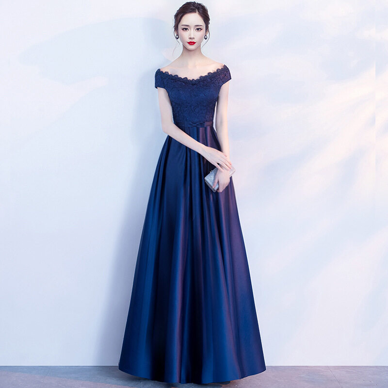 EAGLELY Formal Gown For Women Elegant Classy Silk Satin Long Gown For Ninang Wedding Sponsor Off Shoulder Plus Size Sponsor Js Prom 18th Birthday Color Blue Ninang For Mother Of The Groom
