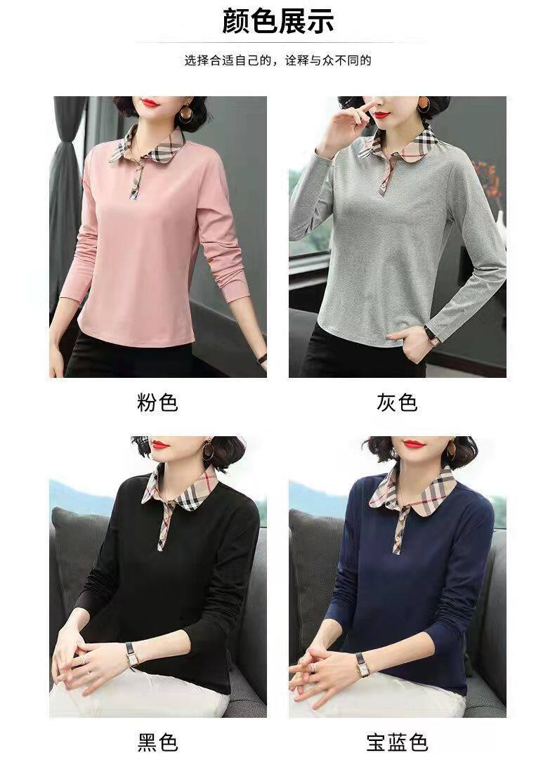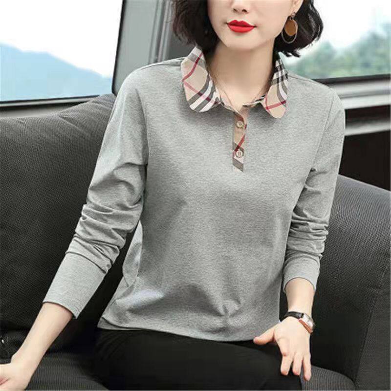 Free Shipping Long sleeve T-shirt Women Plus size Spring and Autumn New Trendy Oversize Temperament Checked Cotton Casual Polo Shirts Female Shirt Basic Stand Collar t shirts Tops