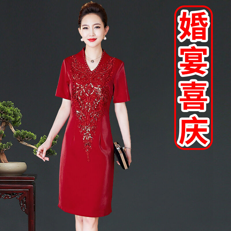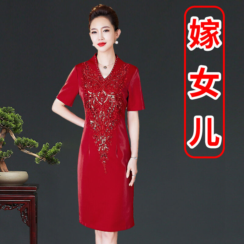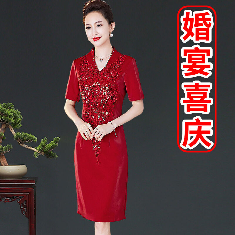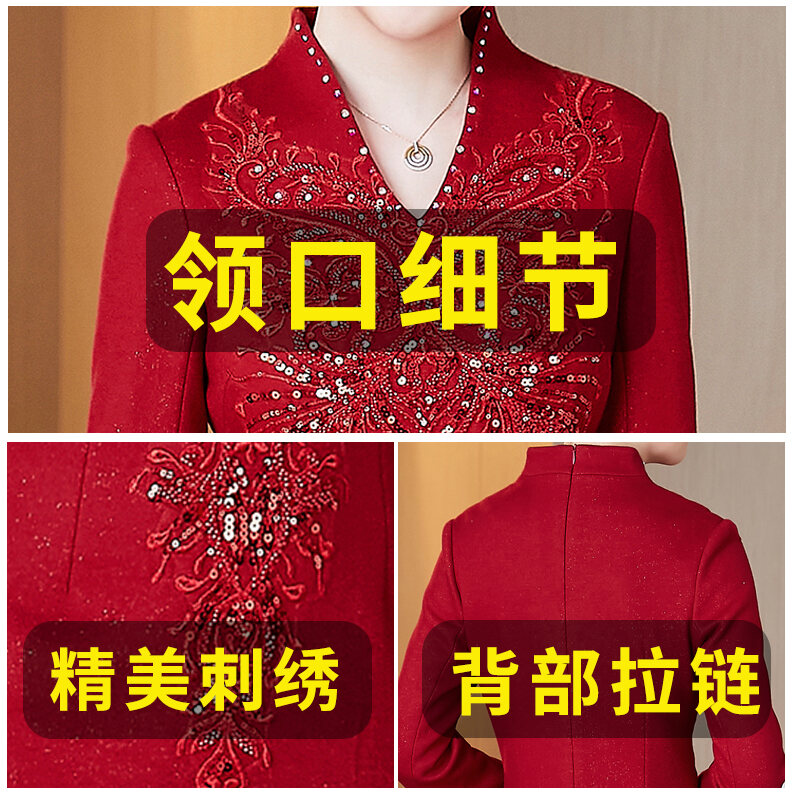 Mom Wedding Banquet Formal Dress Noble Young Temperament Usually Can Wear Cheongsam Large Size Wedding Mother-in-Law Wedding Banquet Dress Autumn
