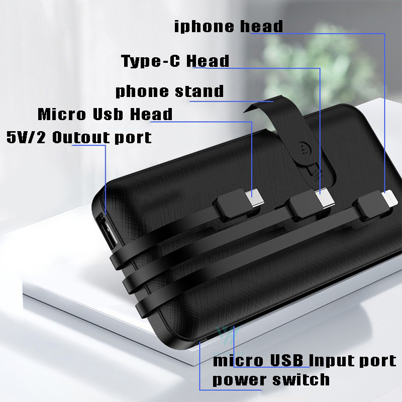Ready Stock 30000mAh Power Bank Portable Fast Charging Full Screen Built-in 3 Cables Powerbank External Batter