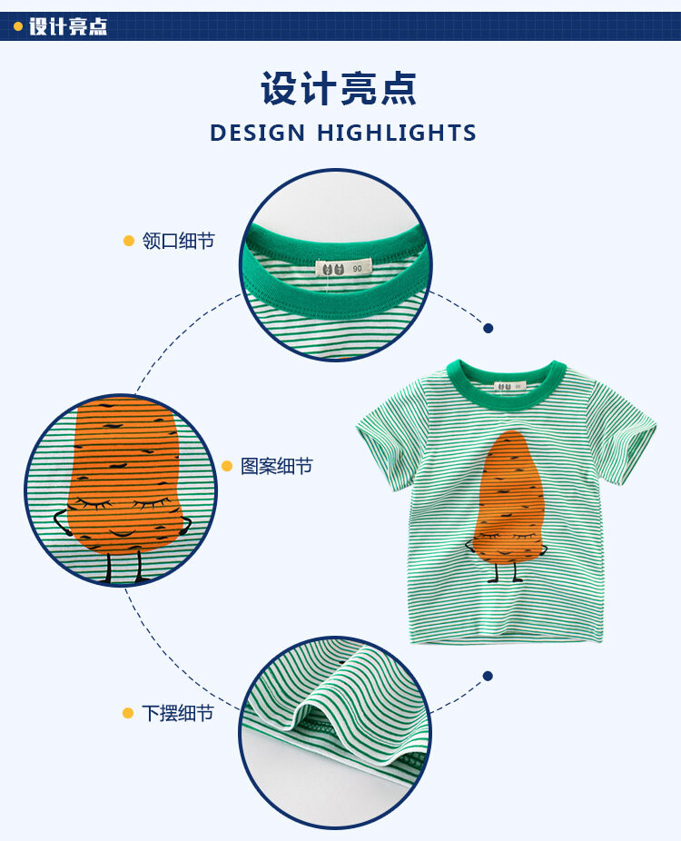 BOYS Summer T-shirt/Children's Top Clothing/100% cotton Short Sleeve/Summer Wear/ONE CARROT
