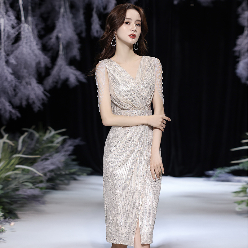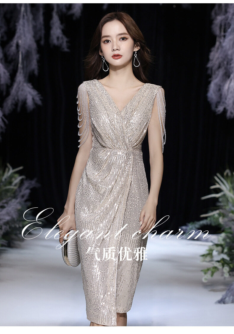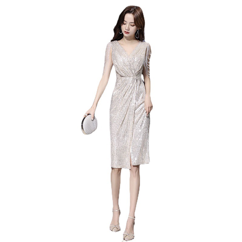 Glary Star Small Evening Dress Skirt Women's New Champagne Lady Temperament Banquet Host Dress Can Be Worn At Ordinary Times