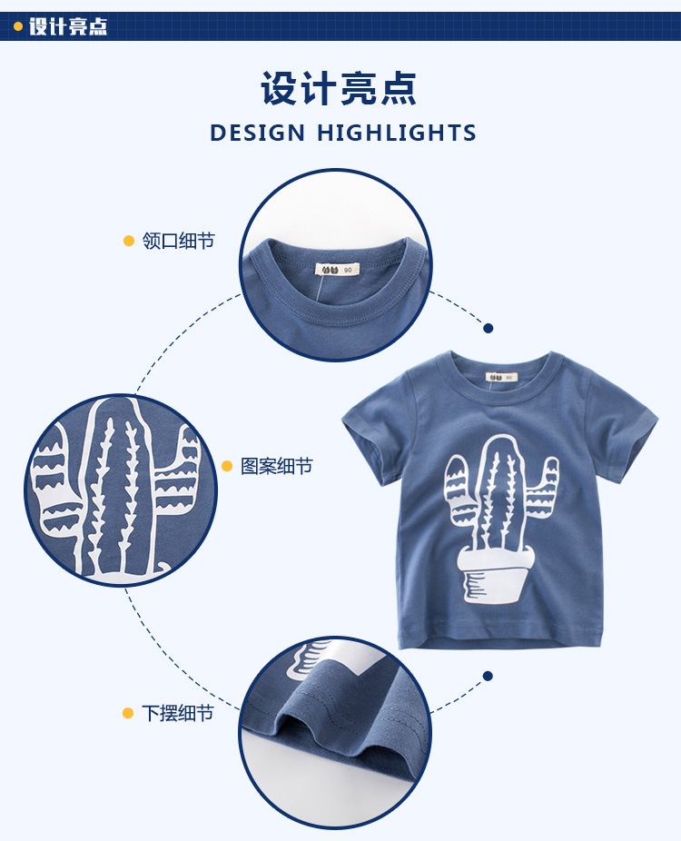 BOYS Summer T-shirt/Children's Top Clothing/100% cotton Short Sleeve/Summer Wear/CACTUS