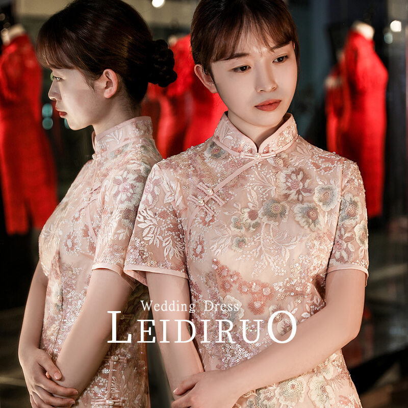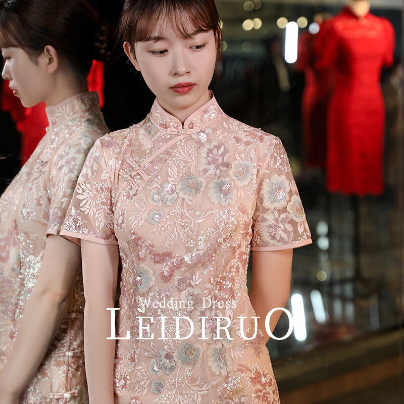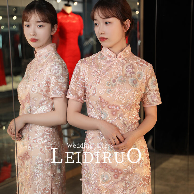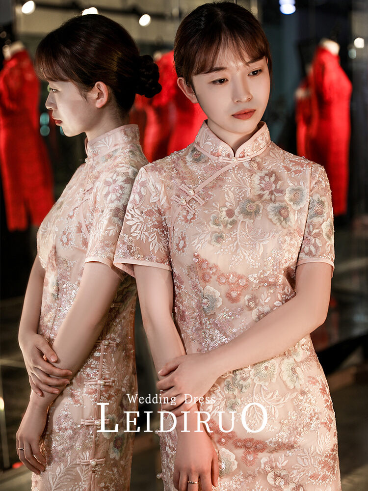 Peach 2022 Summer New Bride Engagement Improved Cheongsam Young Style Dress for Toast Formal Dress Girl Dress