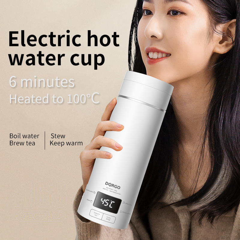 DQRGO (SG 3 PIN PLUG) Portable Electric Kettles stew cup Thermal Cup 400ml heating and heat preservation integrated small mini 304 stainless steel inner tank with LCD screen temperature display