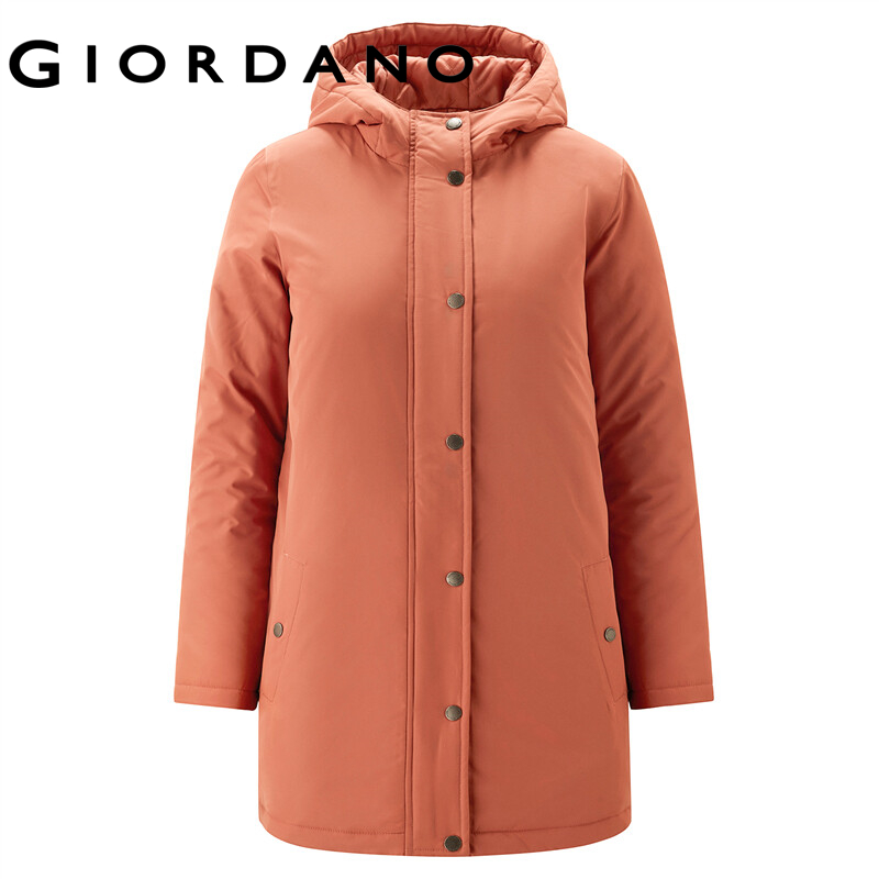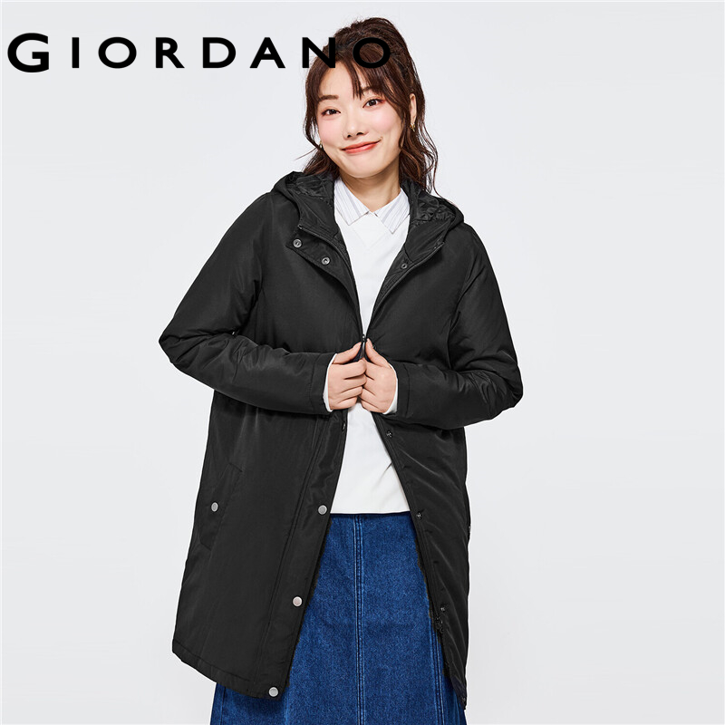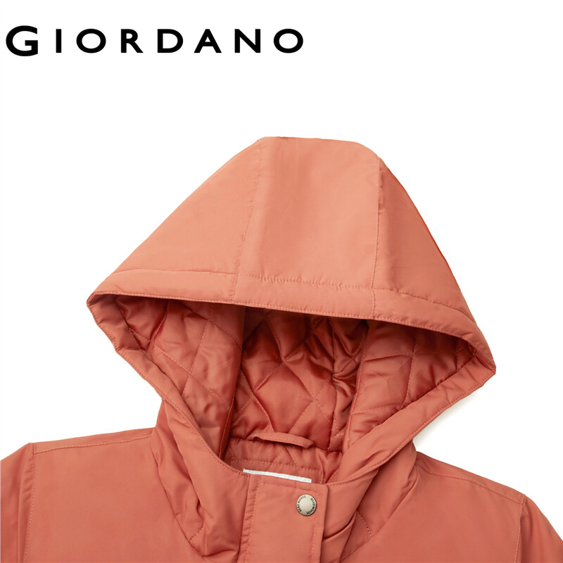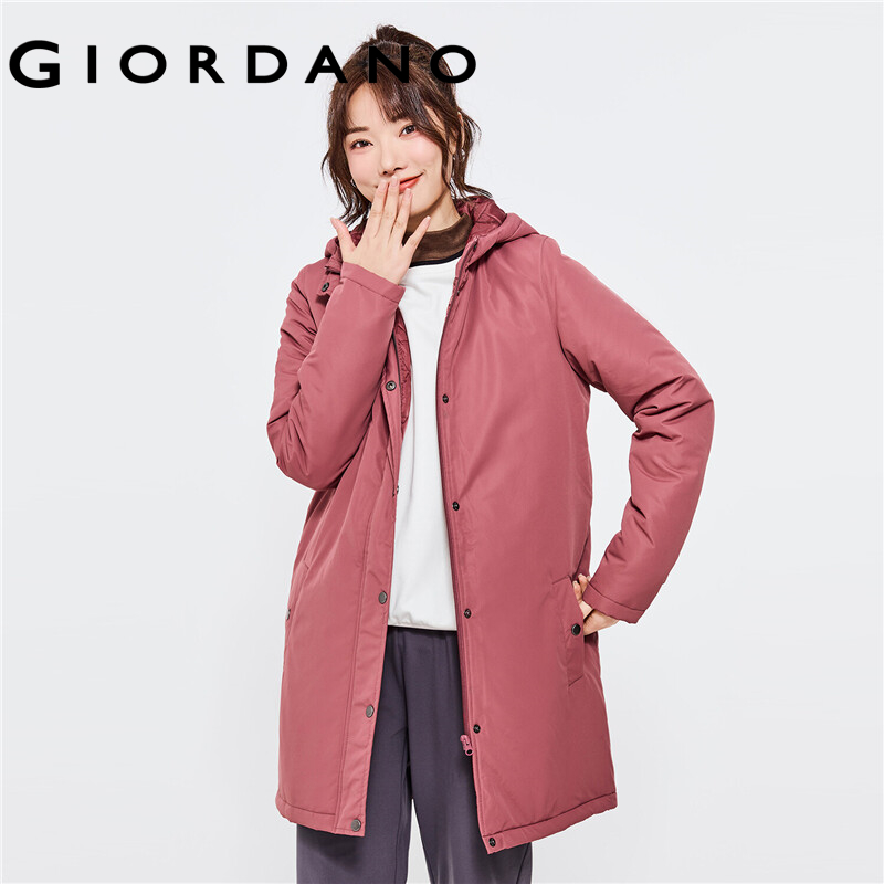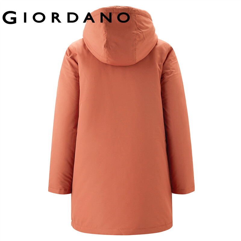 GIORDANO Women Jackets Solid Color Mid Long Windproof Hooded Jackets Zip Front Waterproof Padded Casual Puffer Jackets 13372830