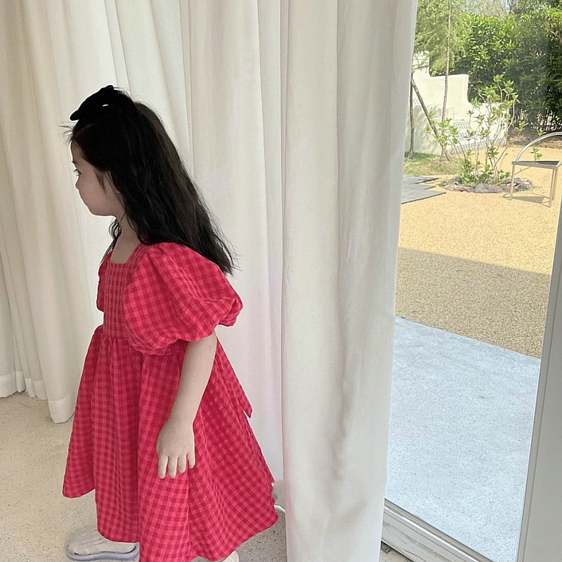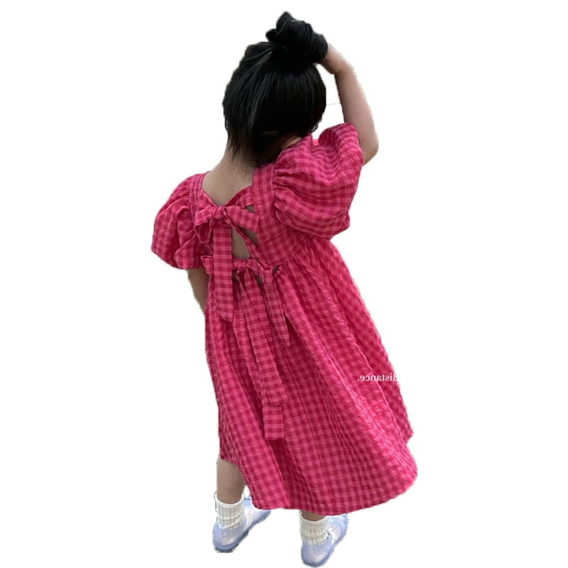 ■❖ girls skirt plaid lace-up dress princess dress summer children's clothing