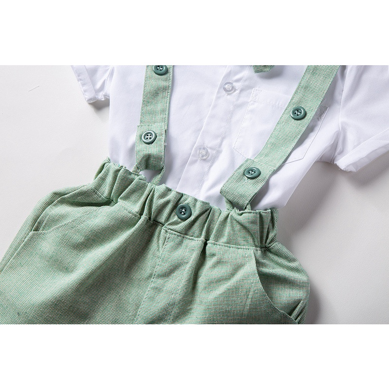 MUGE [2022 New Style] 0-3 Years Old/European American Gentleman Boys Short-Sleeved Shirt Suspenders Shorts Suit/Summer Clothing/Baby Baptism/Birthday Party Dress Suit/kaile Children's Clothing