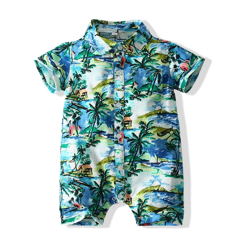 MUGE [2022 New Style] 0-3 Years Old/Boys Vacation Beach Style Summer Dress/Pineapple Tree Pattern Short-Sleeved Jumpsuit/Baby Baptism/Birthday Party Dress/kaile Children's Clothing