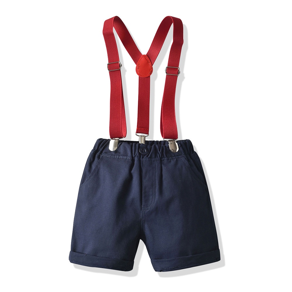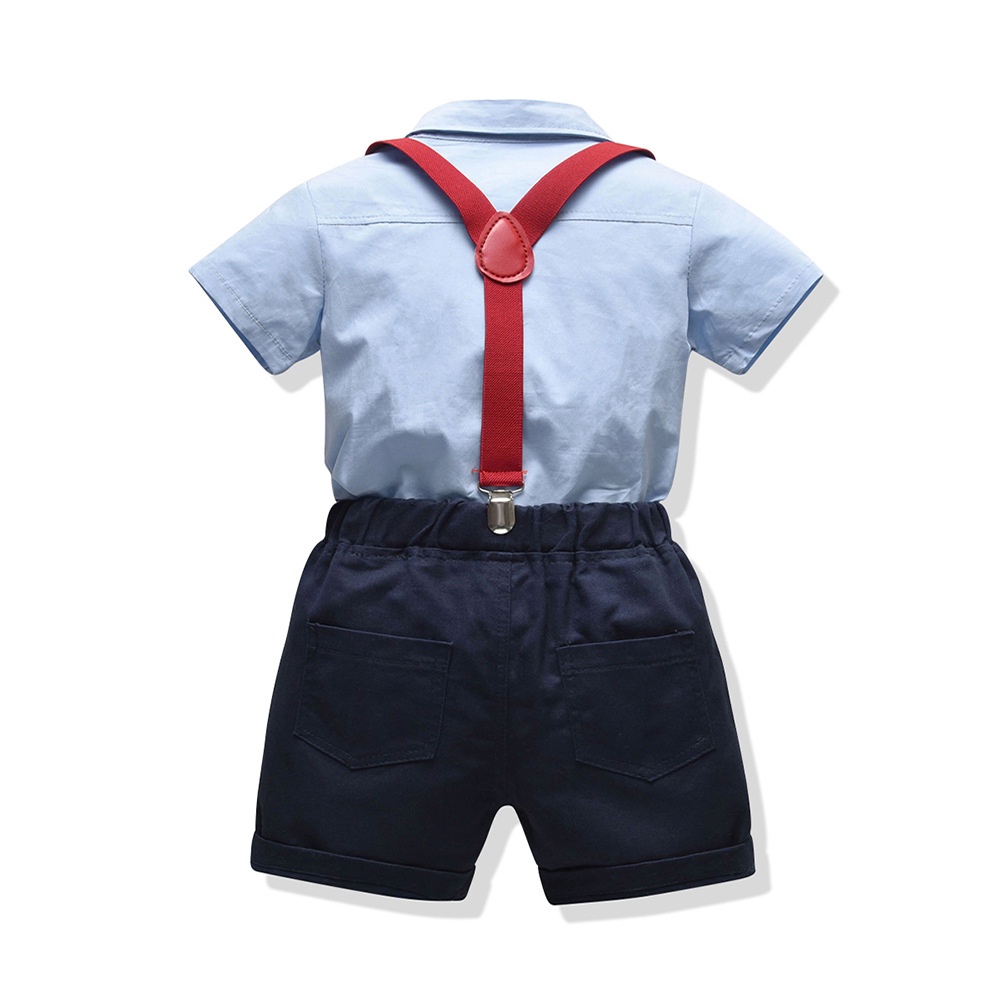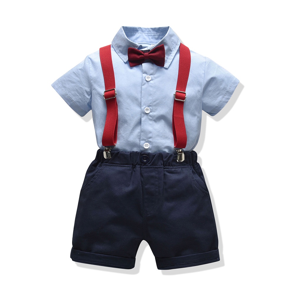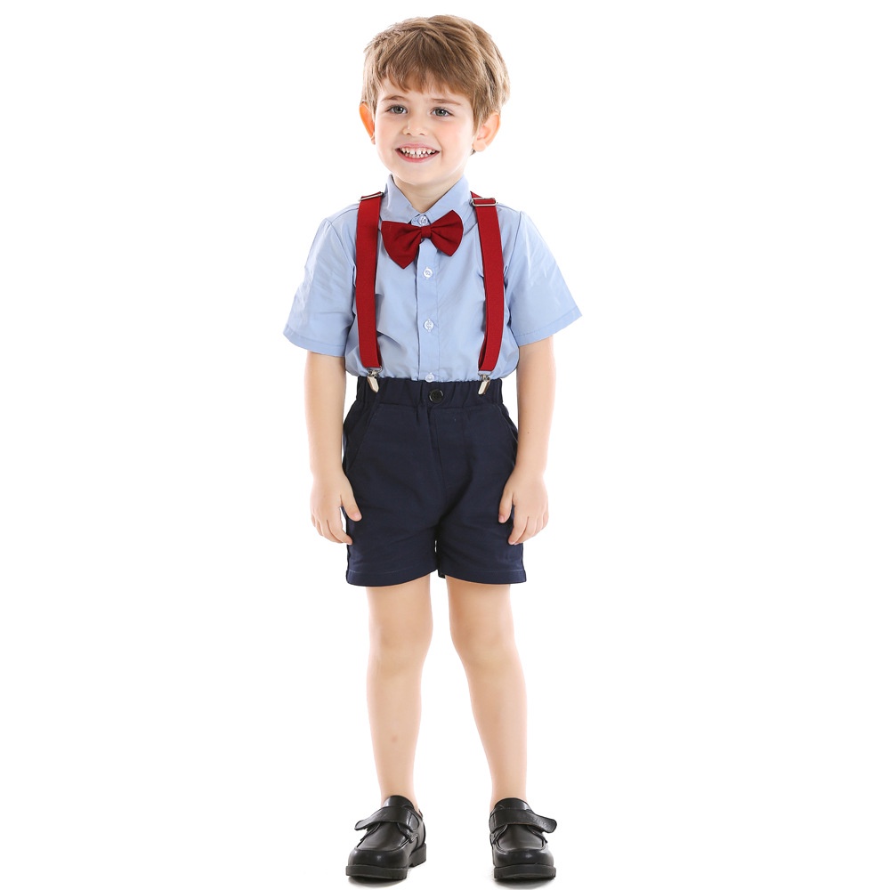MUGE [2022 New Style] 1-6 Years Old/Boys Spring Summer Gentleman Suit/Blue Short-Sleeved Shirt/Shorts/Red Bow Tie/Birthday Party Dress/kaile Children's Clothing