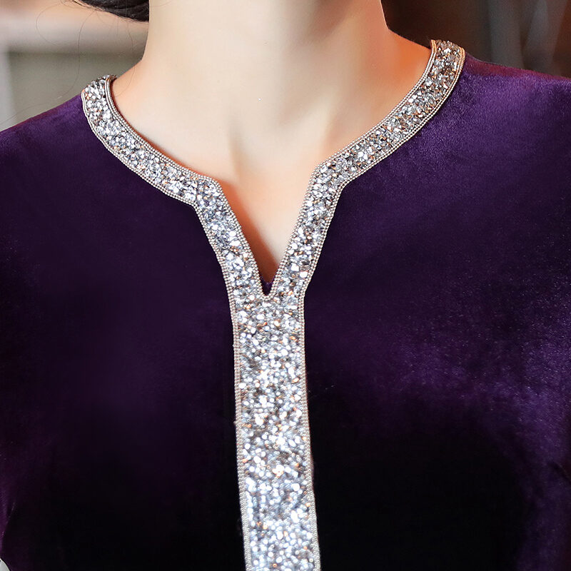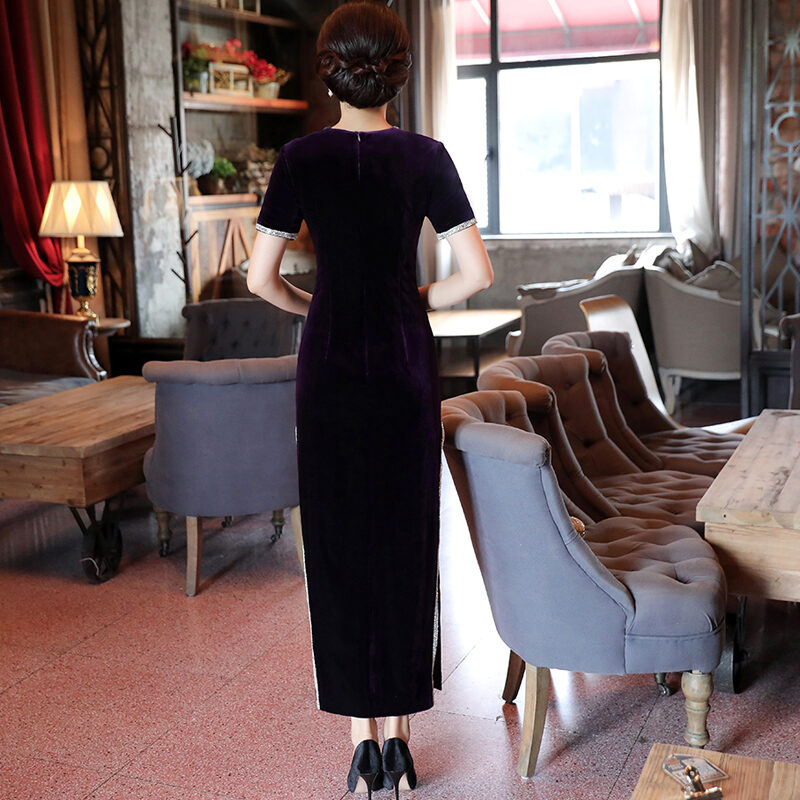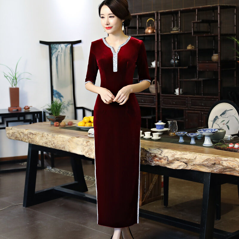 Long Sleeve Wedding Middle-aged Women Dress Formal Dress Cheongsam Dress 2022 Spring Velvet Long Chinese Western Style Clothing