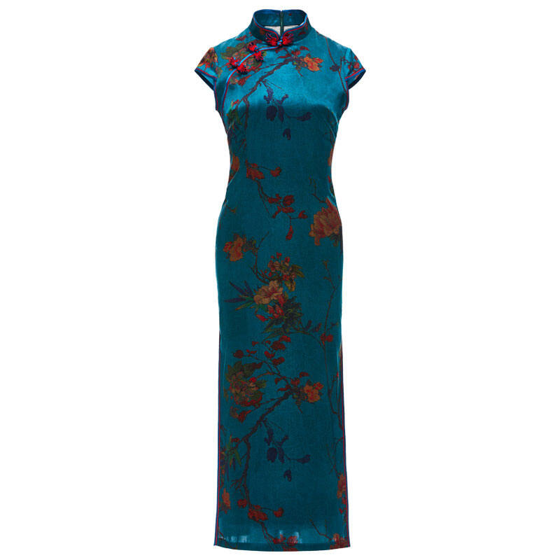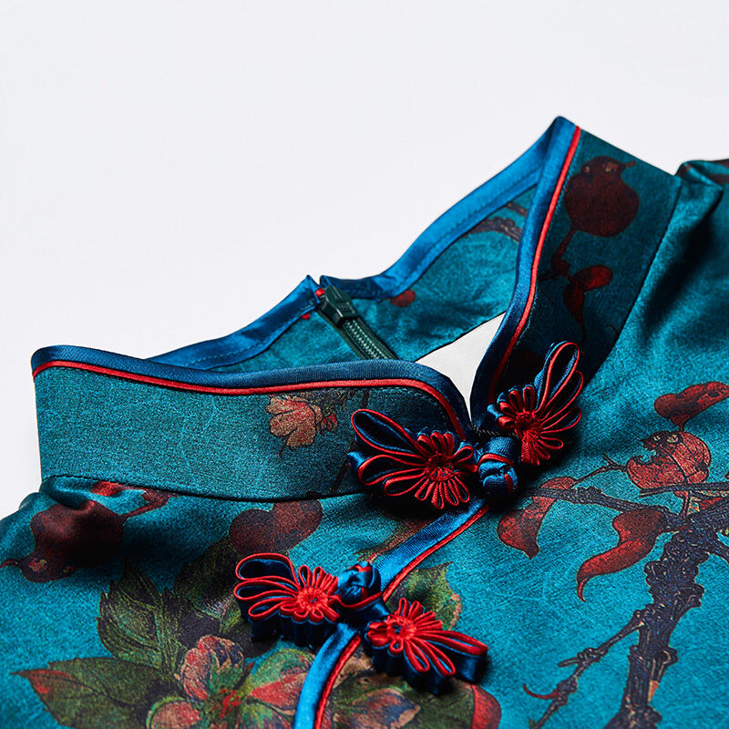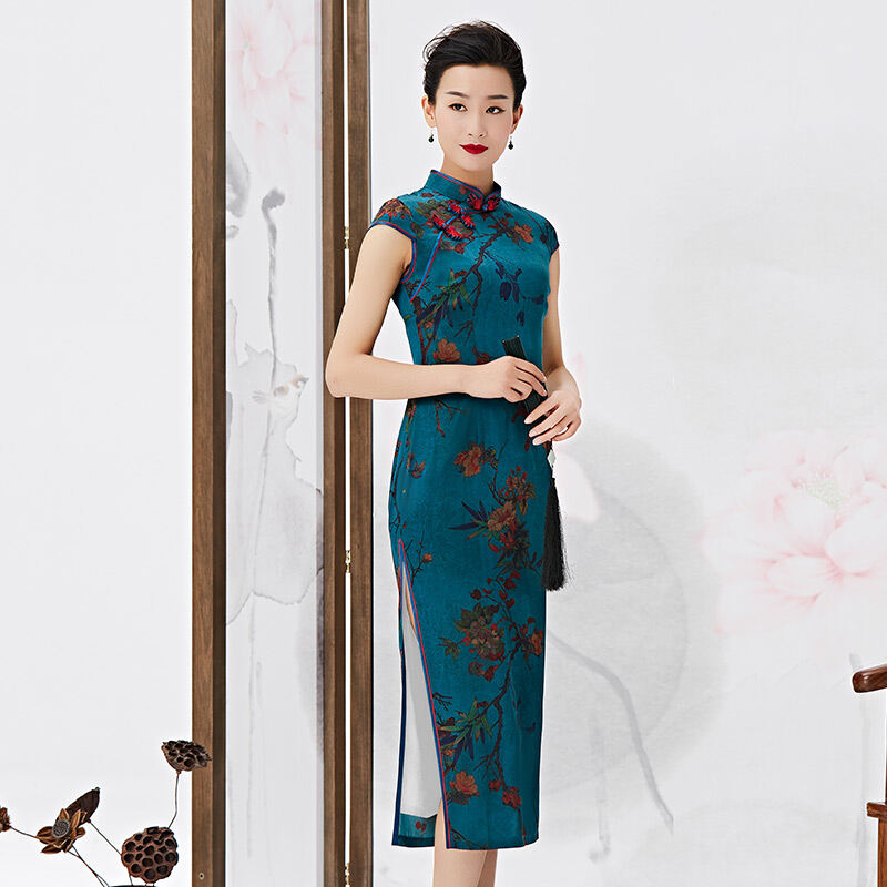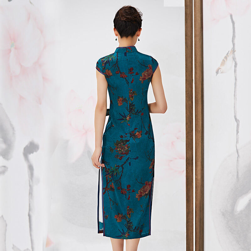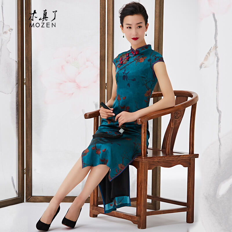 Muzhen Improved Cheongsam Long New Retro Silk Dress Middle-aged Women Dress Banquet Formal Dress 920