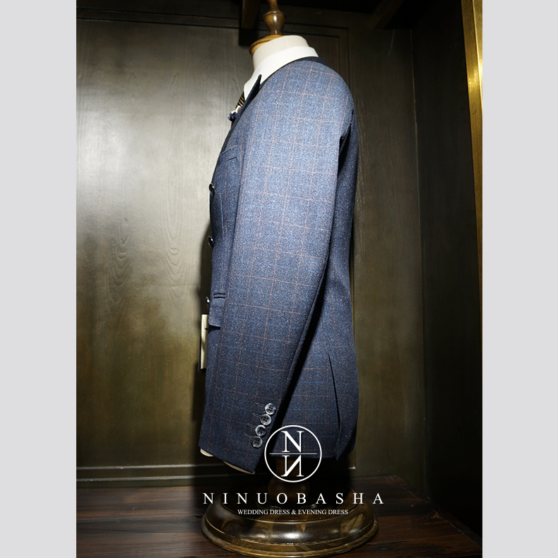 NWM124 3 Pieces Wedding Two Buttons Men Suits Fashion Fromal V-neck Woolen Suits