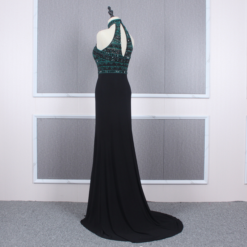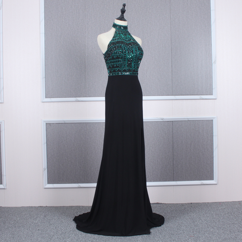 Jancember YY182 High Neck Halter Vintage Women Clothing Prom Dresses Black Party Evening Dresses Luxurious