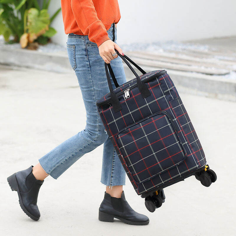 Household Aluminum Alloy Trolley Shopping Cart Elderly Shopping Trolley Universal Wheel Folding Trolley Aluminum Foil Insulation Bag