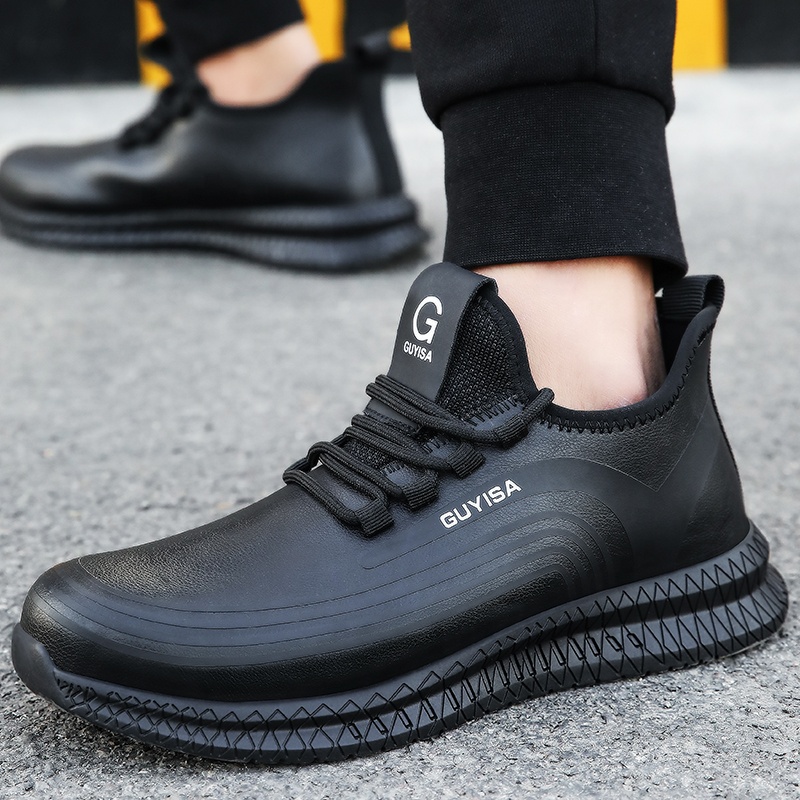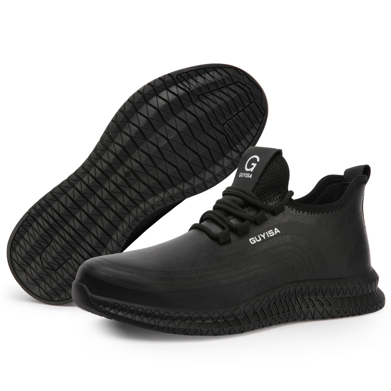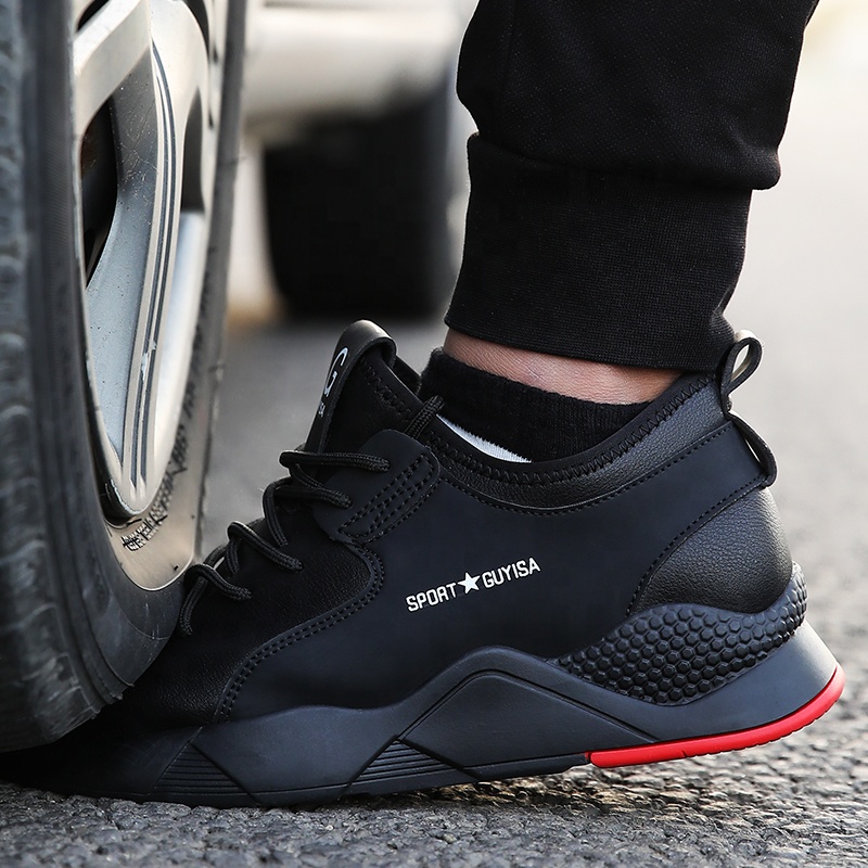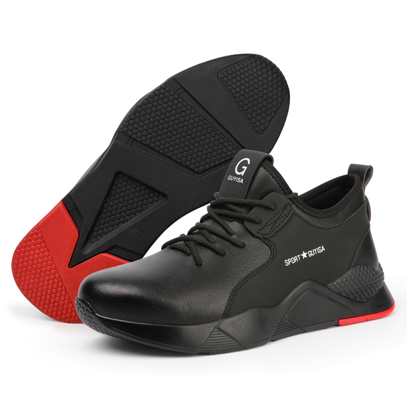 Guyisa Brand 2020 Fashion Black Anti Slip Waterproof Leather Steel Toe Safety Shoes For Men Heavy Industry