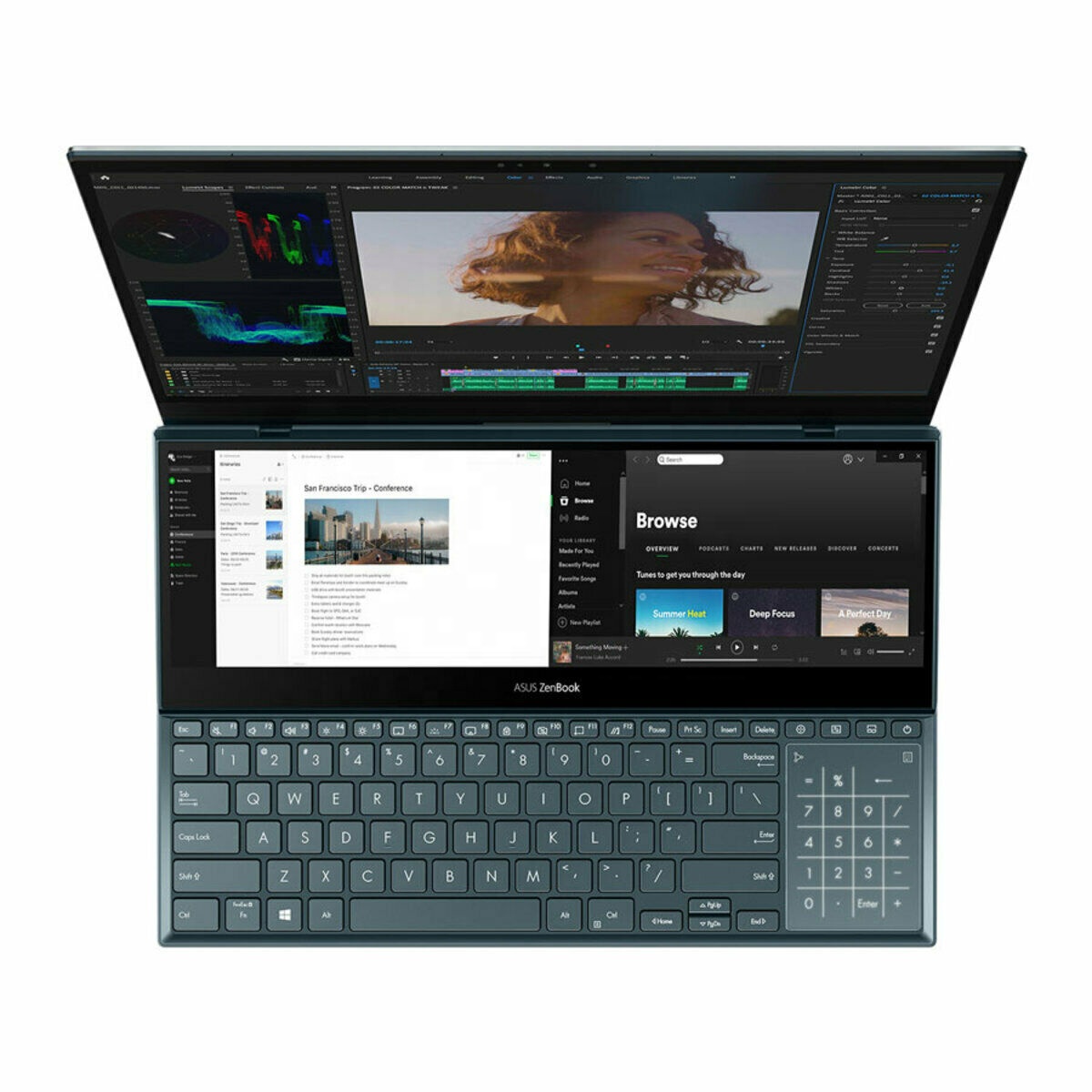 ZenBook Pro Duo 15 OLEDis incredibly powerful, featuring up to a 10th Generation Intel Core i9 eight-core processor that’s designed to deliver superb performance demanding tasks like rendering or editing high-resolution video. With its unprecedented 5 GHz Turbo Boost frequency, ZenBook Pro Duo 15 OLED enables effortless cross-screen workflows using ScreenPad Plus and the main display.